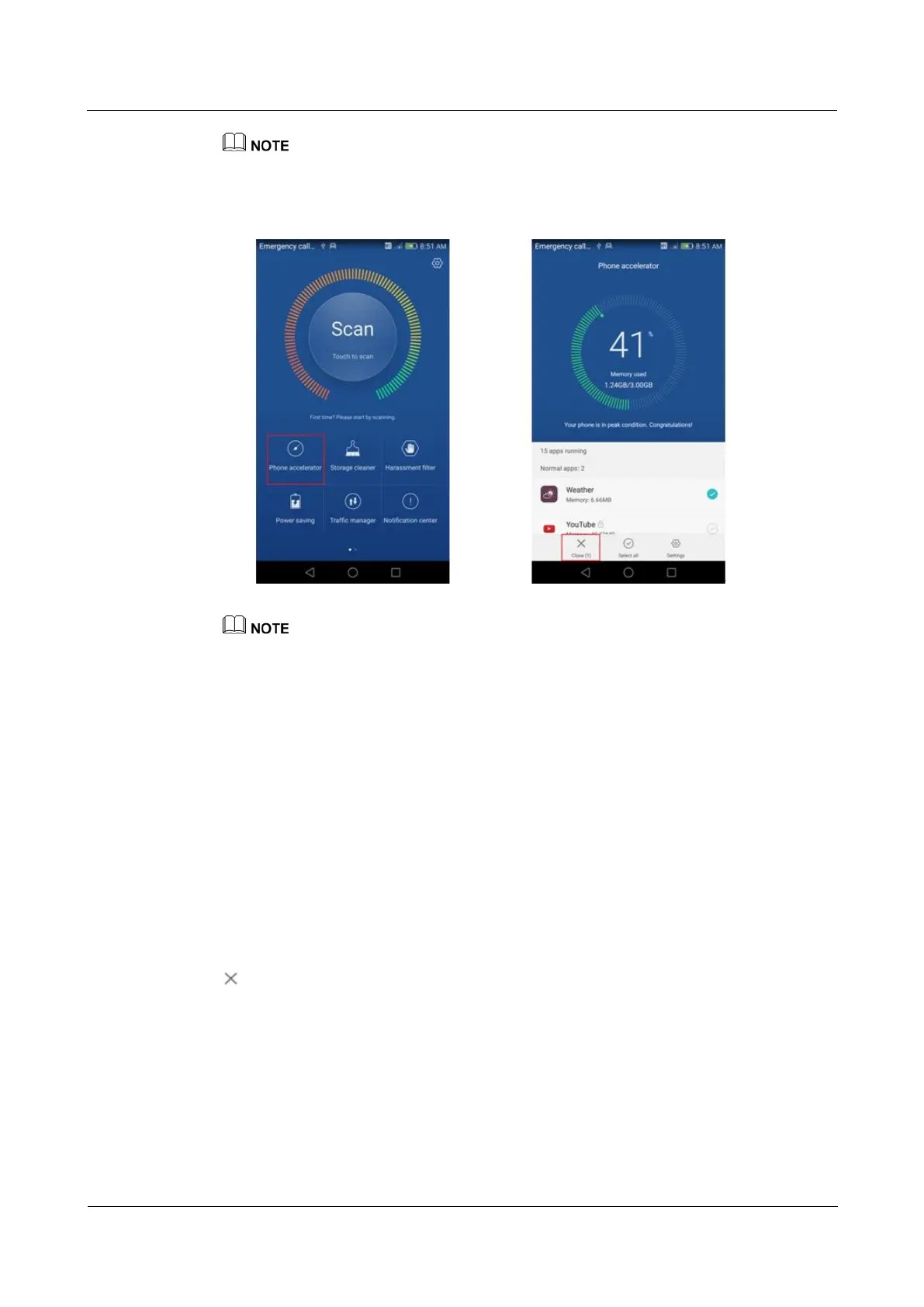 Manager, touch Phone accelerator and close all background apps at the touch of a