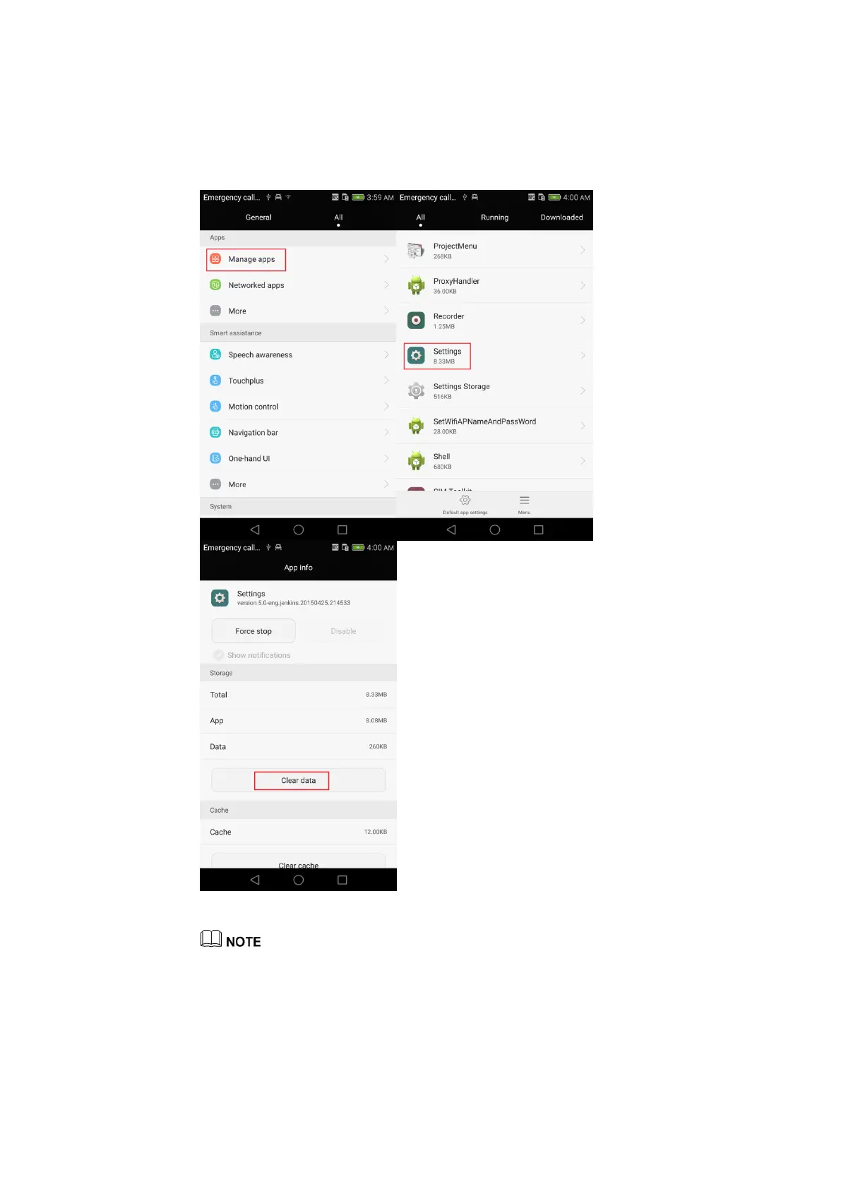 On the home screen, go to Settings > Manage apps > All > Clear cache.