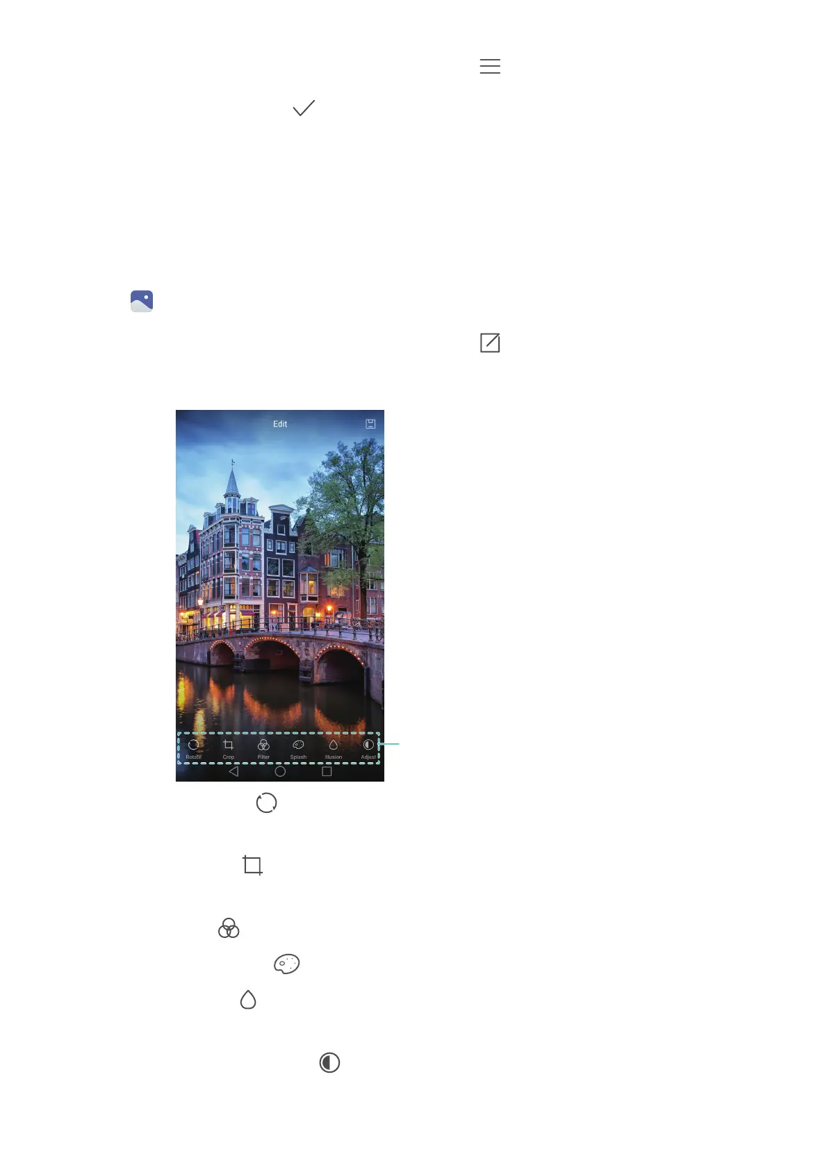 The Gallery application comes with powerful image editing tools that you can use to bring your