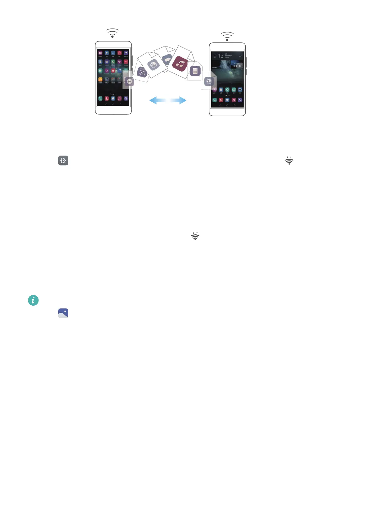 Share files between two devices by establishing a Wi-Fi Direct connection.