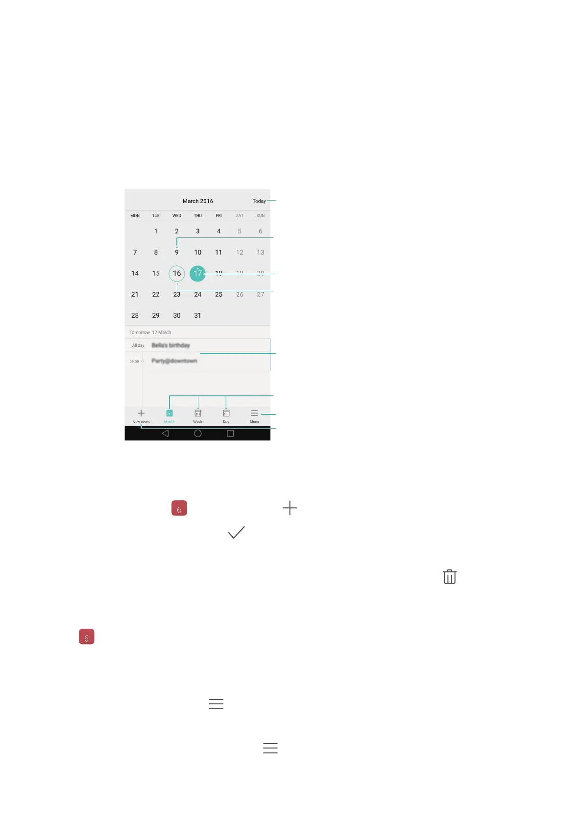 : Go to the event that you want to delete and then touch .
