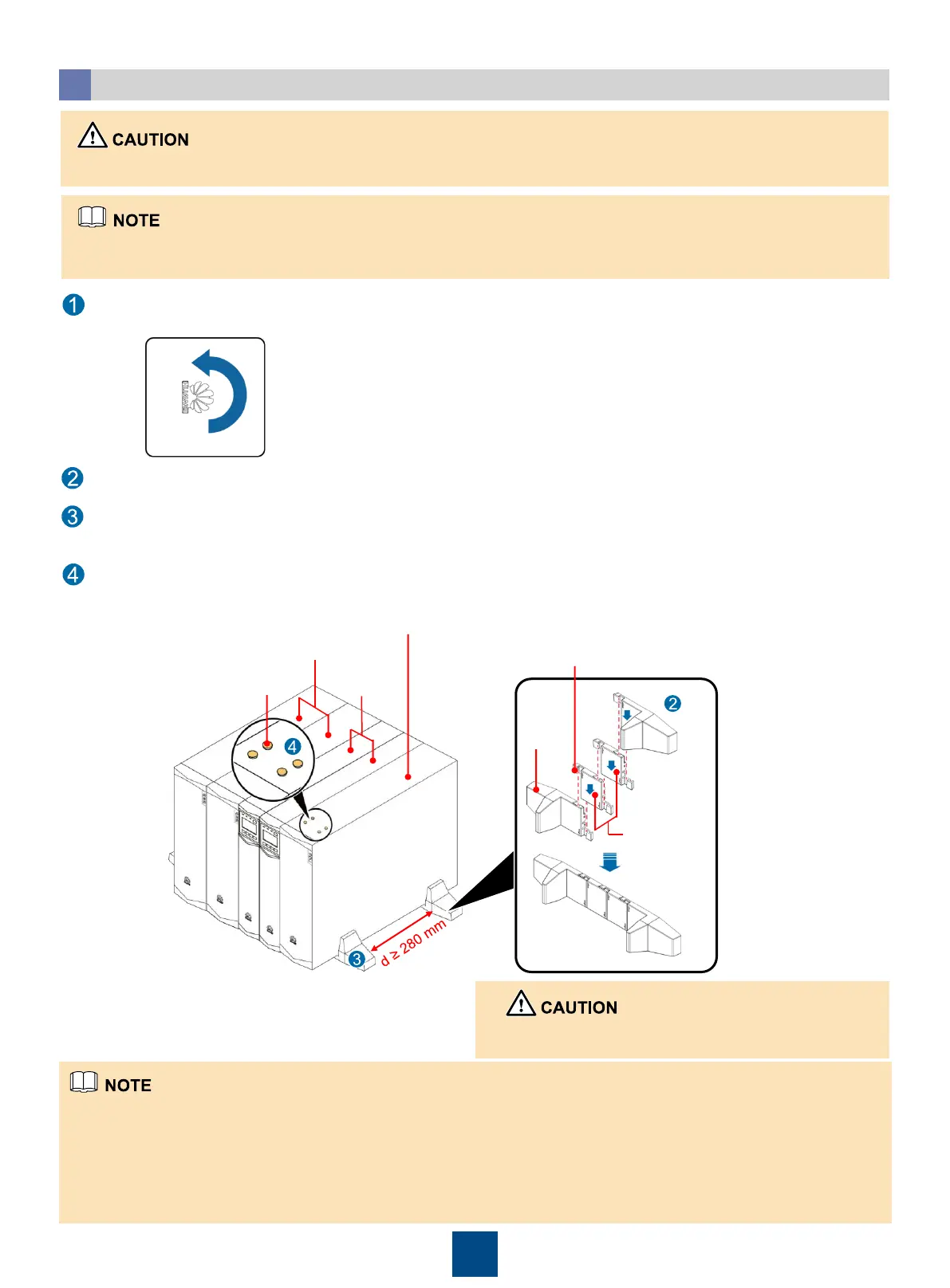 than or equal to 280 mm) between the support bases, place devices on the support bases, and secure them.