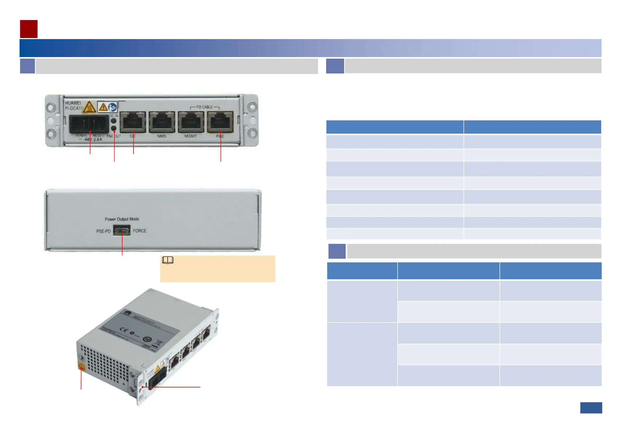 The RTN PI-DC A11 is an indoor PI. It uses DC power input and transmits GE electrical signals and -48 V power signals to the full-outdoor RTN 300 equipment through an outdoor network cable.