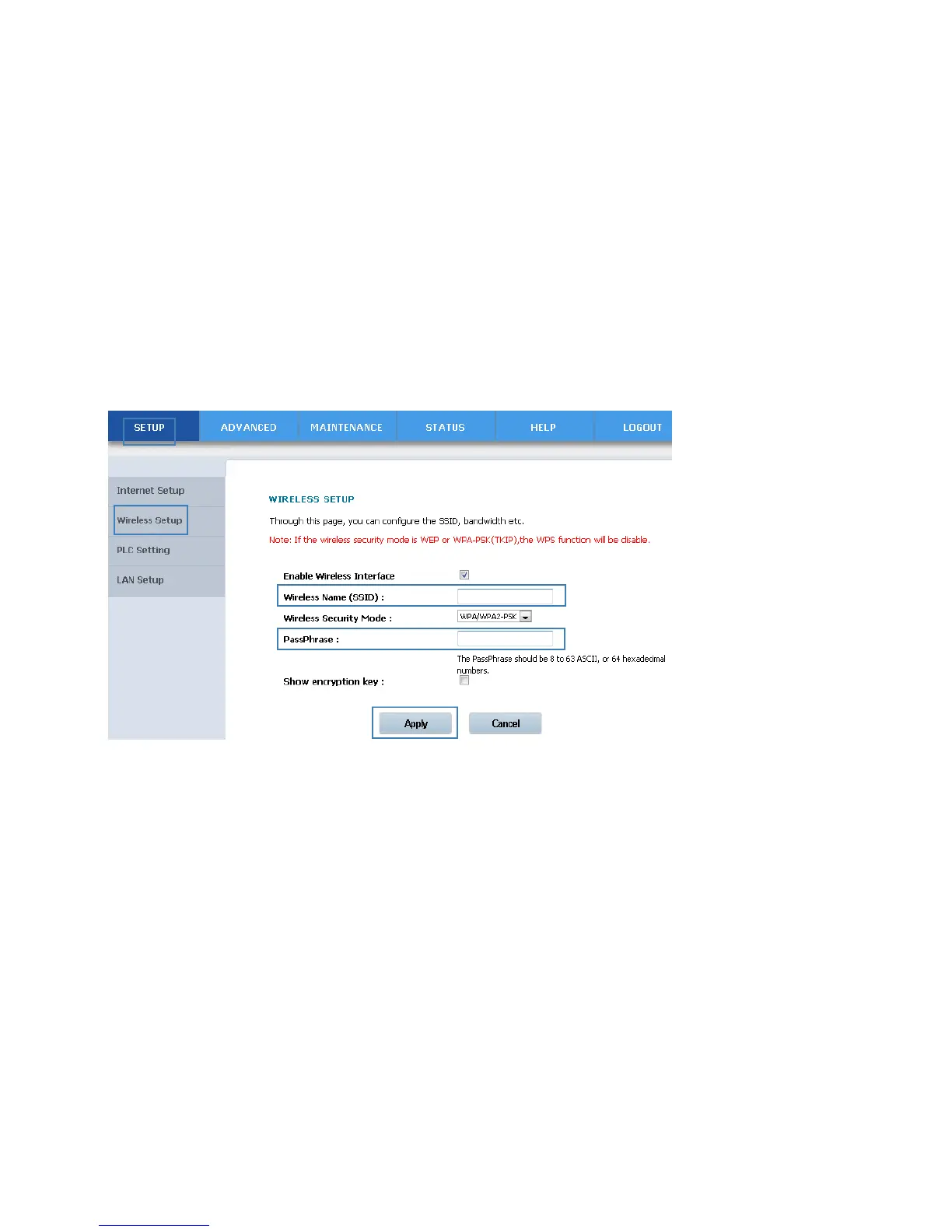 2. In the navigation tree, choose SETUP > Wireless Setup.