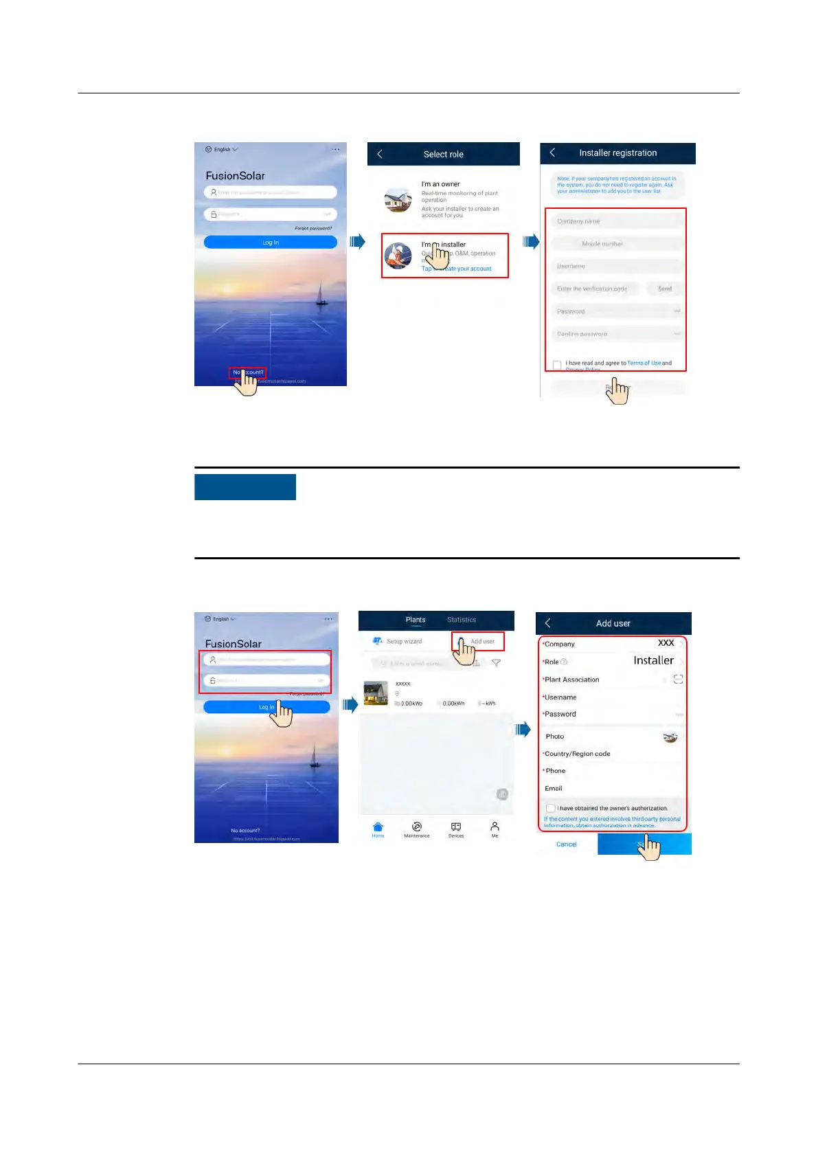 To create multiple installer accounts for a company, log in to the FusionSolar App