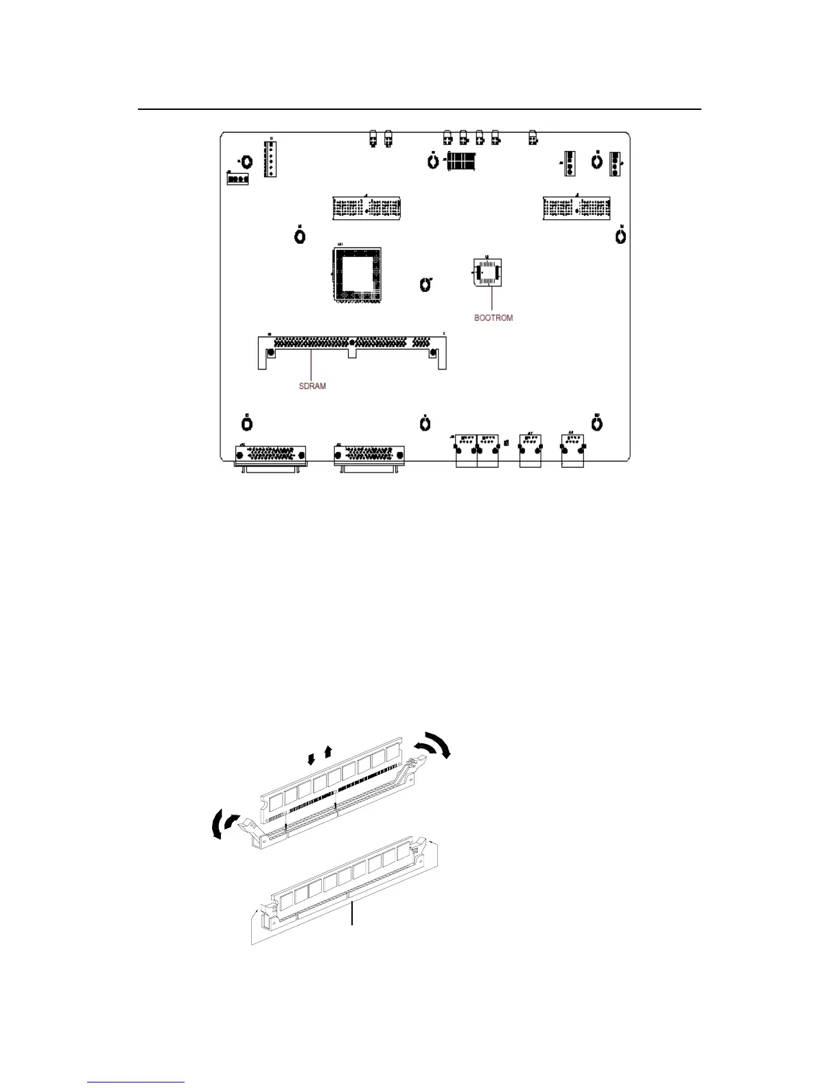 Figure 6-5c Location of BOOTROM and SDRAM SIMM on system card (for R2620/R2621)
