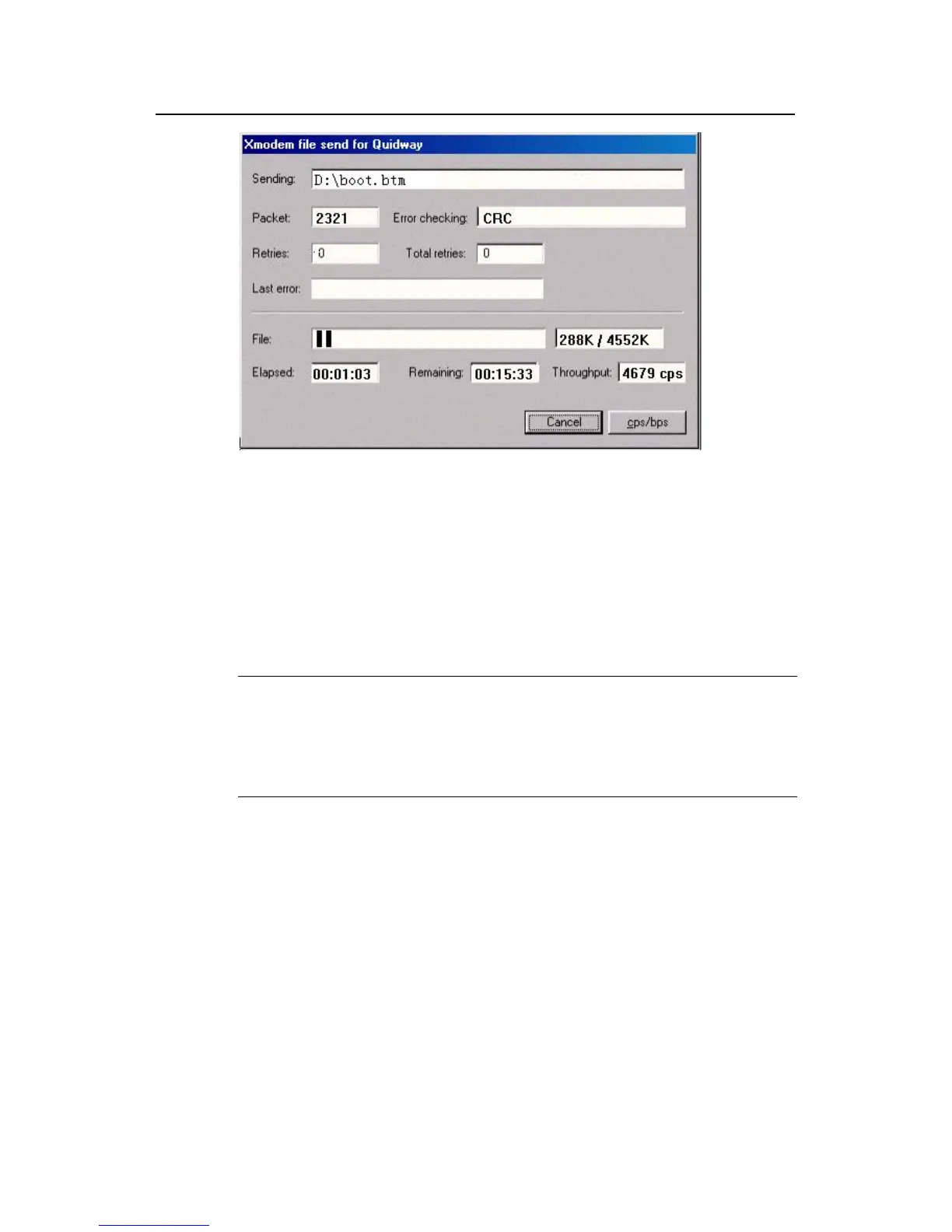 9600 bps. In this case, the system does not display the above prompt message but “BootROM is