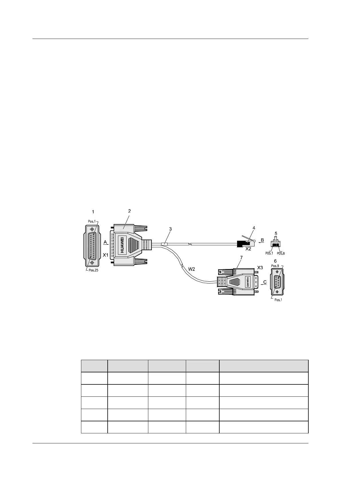 5. Direction B 6. Direction C 7. DB9 plug W1 and W2 communication cables