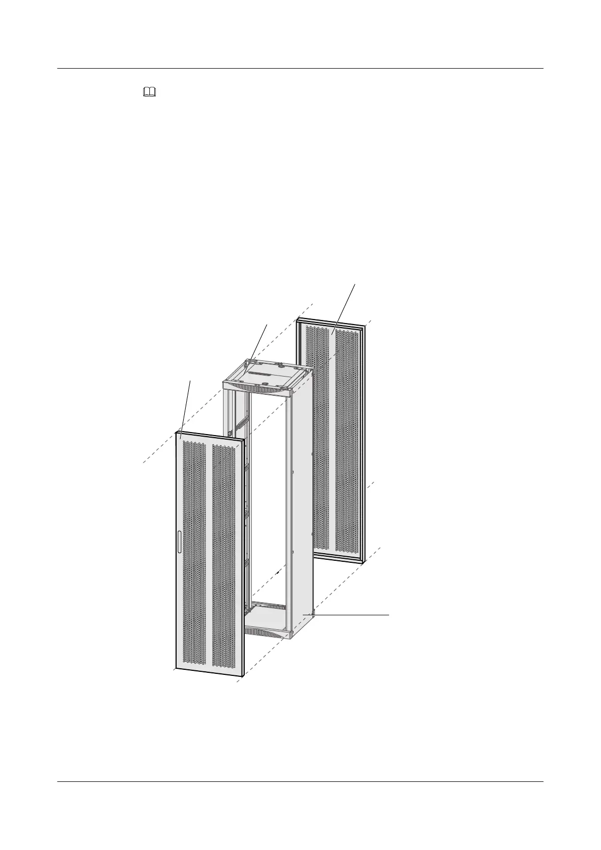 serviceable cabinet consists of a front door, a rear door, two side panels, and a rack.
