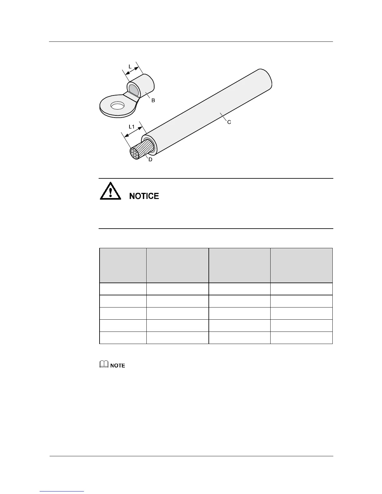 If the bare crimping terminal is not provided by Huawei, the value of L1 is 1 mm (0.04 in.)