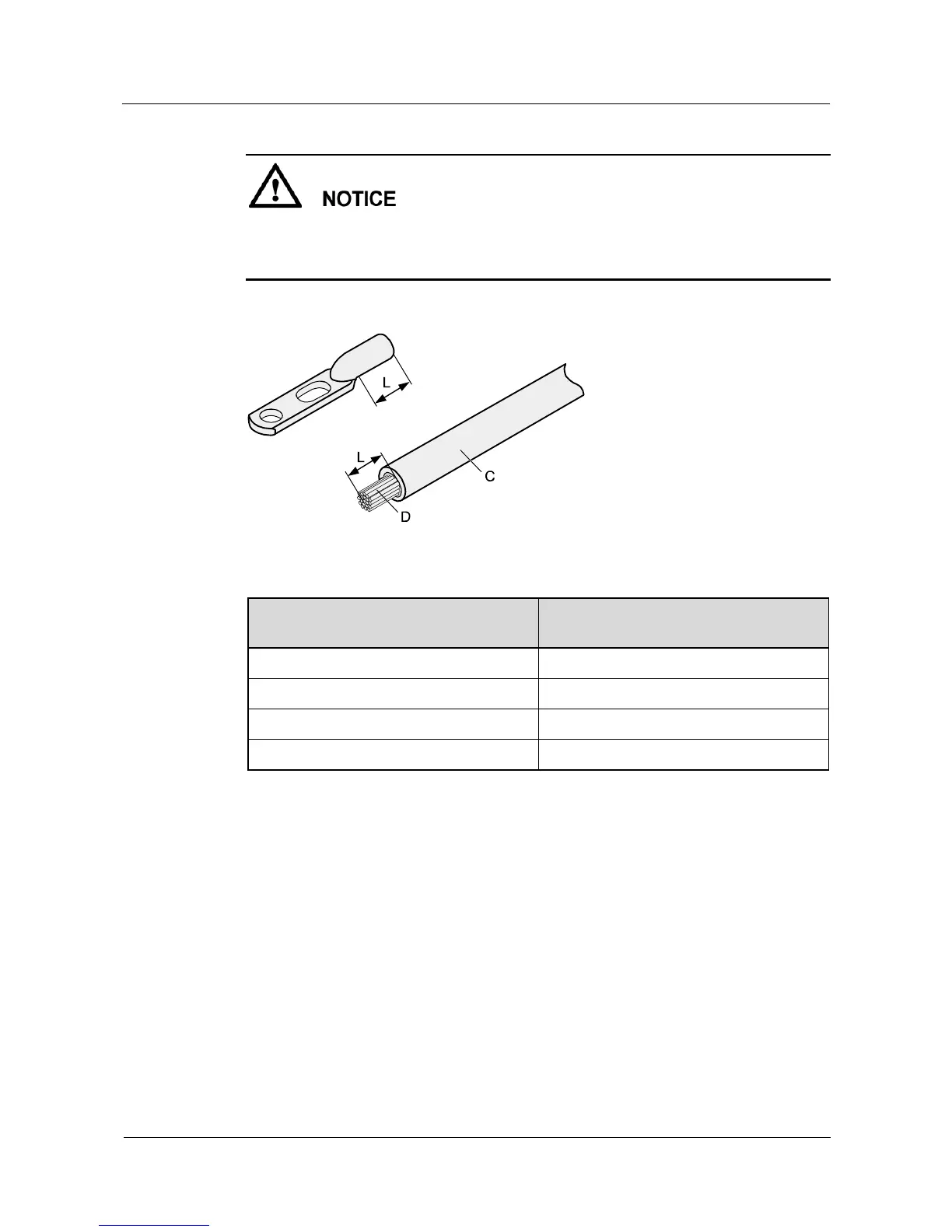 If the bare crimping terminal is not provided by Huawei, you can adjust the value of L as