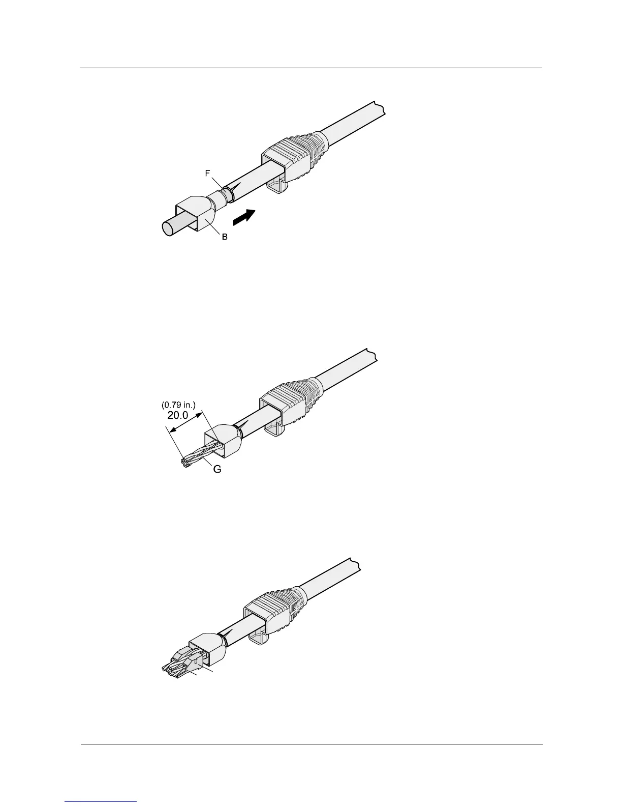 is no surplus copper wire. The exposed twisted-pair cable is about 20 mm (0.79 in.) long, as