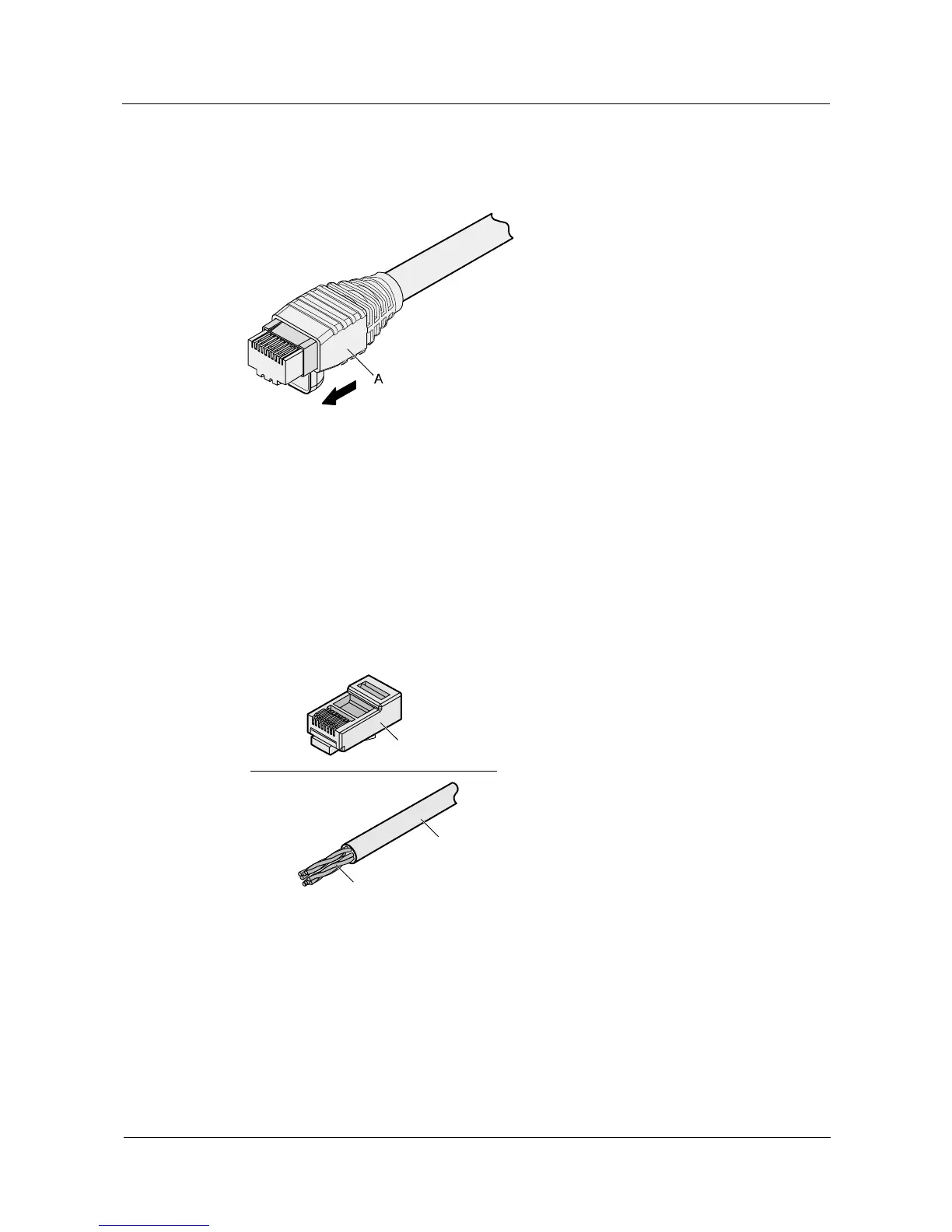 Figure 5-28 shows the components of an unshielded RJ45 connector and cable.