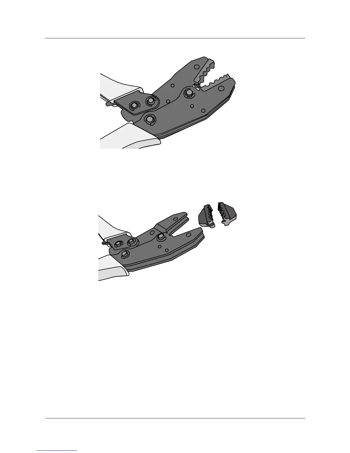 Step 4 Place the mold to be installed into the jaw of the COAX crimping tools and align the screw