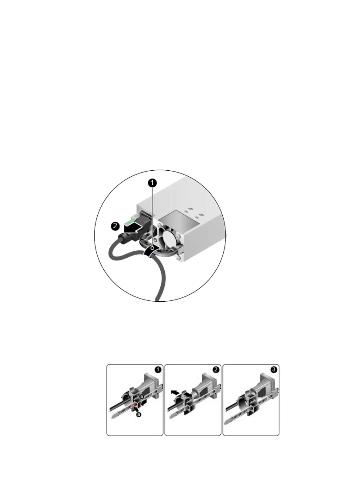the PSU socket. See b of step (1) in Figure2 Removing a power cable (secured