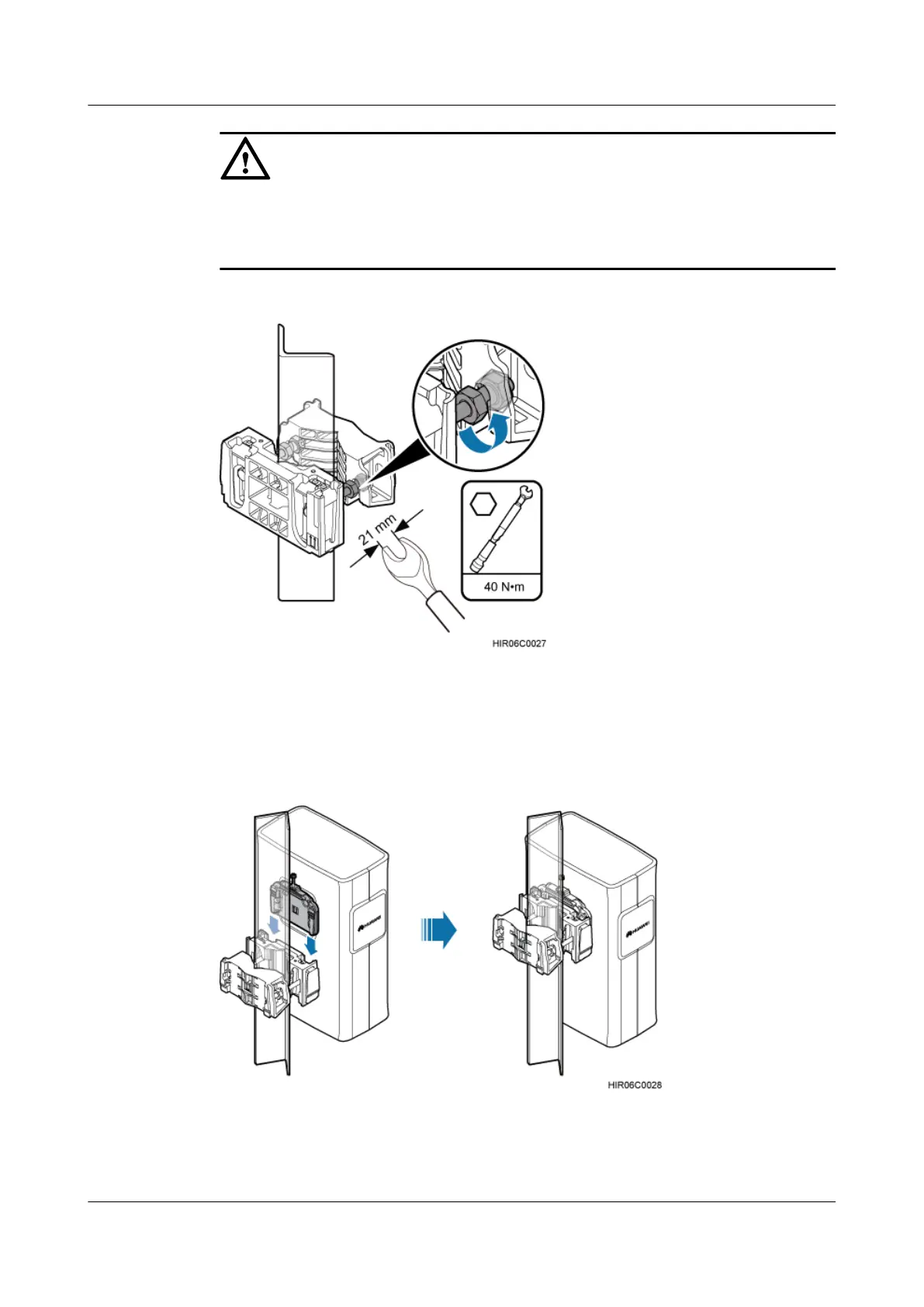 Step 5 Install the RRU on the main mounting bracket until the RRU snaps shut, as shown in Figure