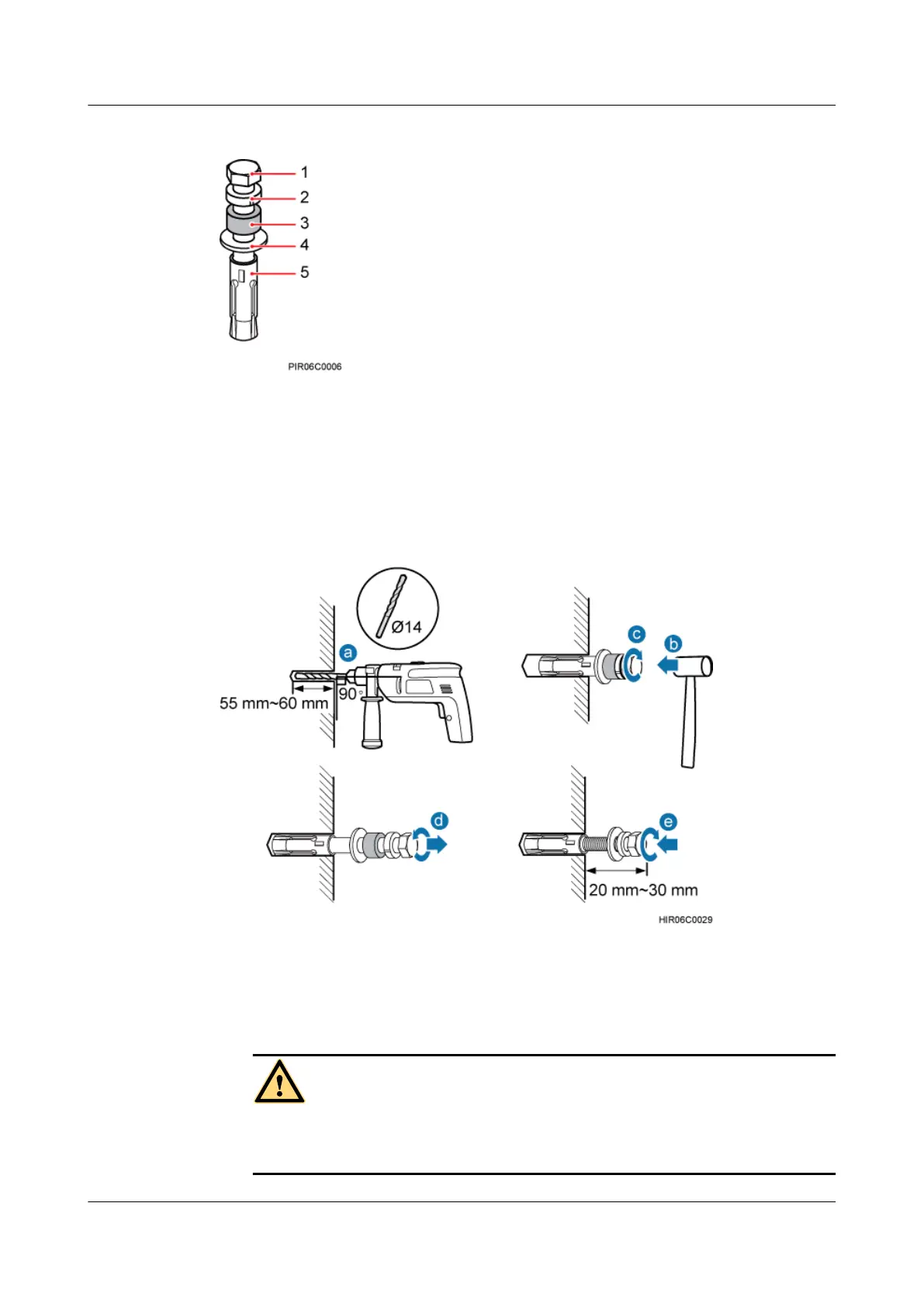 Step 2 Drill holes at the anchor points, and then insert expansion bolt assemblies, as shown in Figure