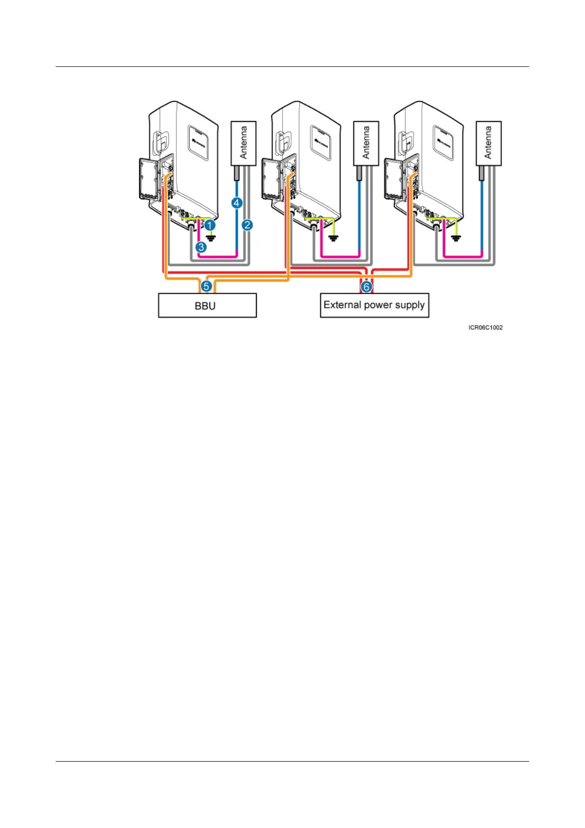 (1) PGND cable (2) RRU RF jumper (3) RRU AISG multi-wire cable