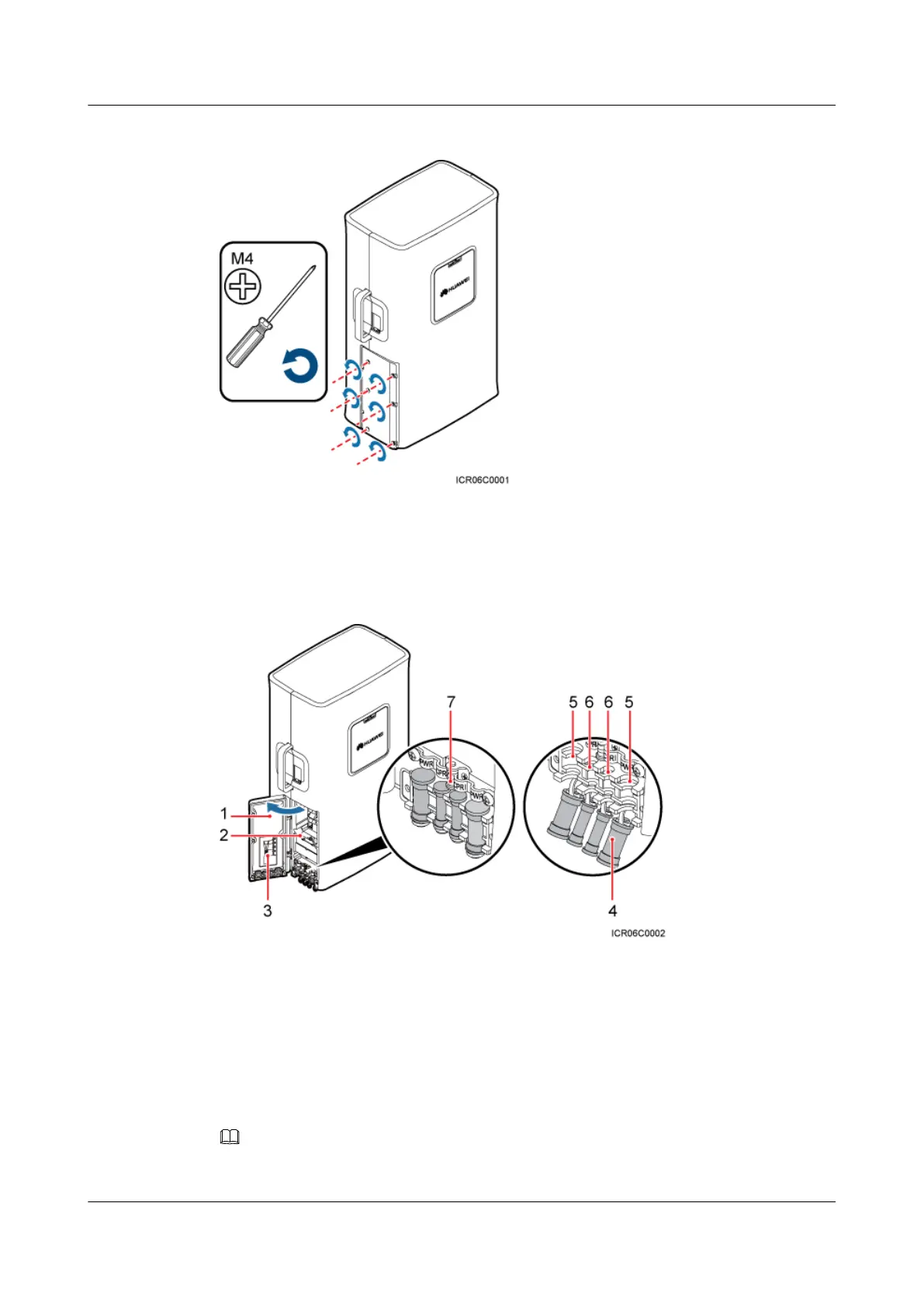 (2) Cabling cavity (3) Cable diagram on labels