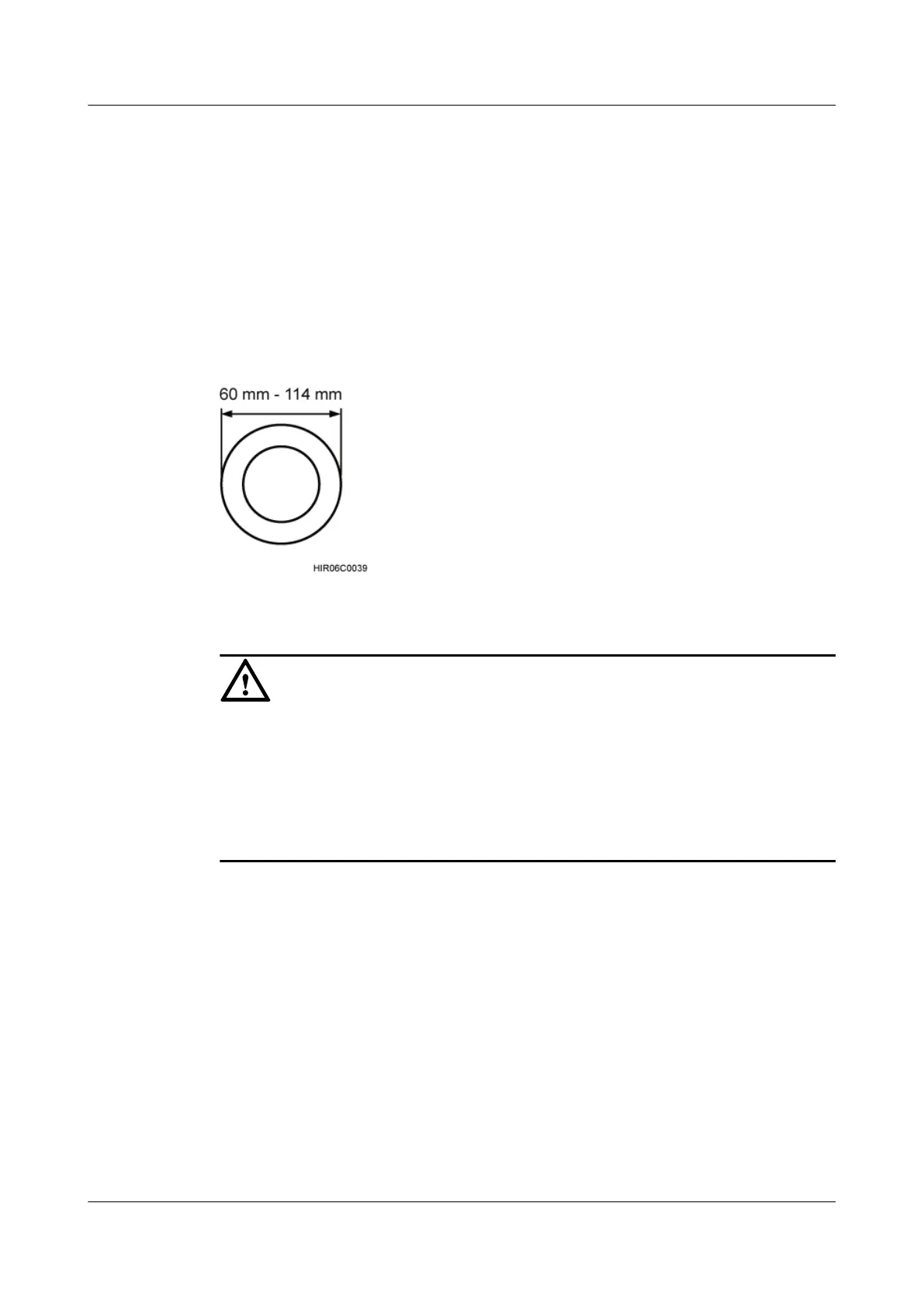 l The diameter of a pole for installing an RRU ranges from 60 mm (2.36 in.) to 114 mm (4.49