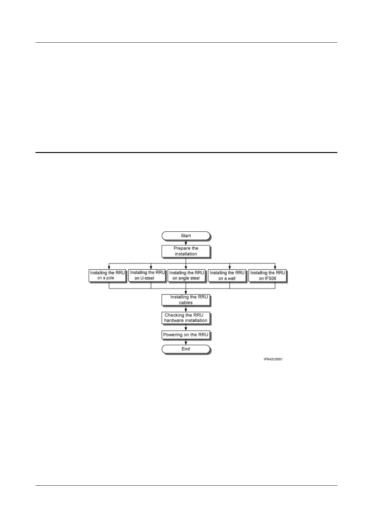 The installation process involves installing an RRU and RRU cables, checking the RRU