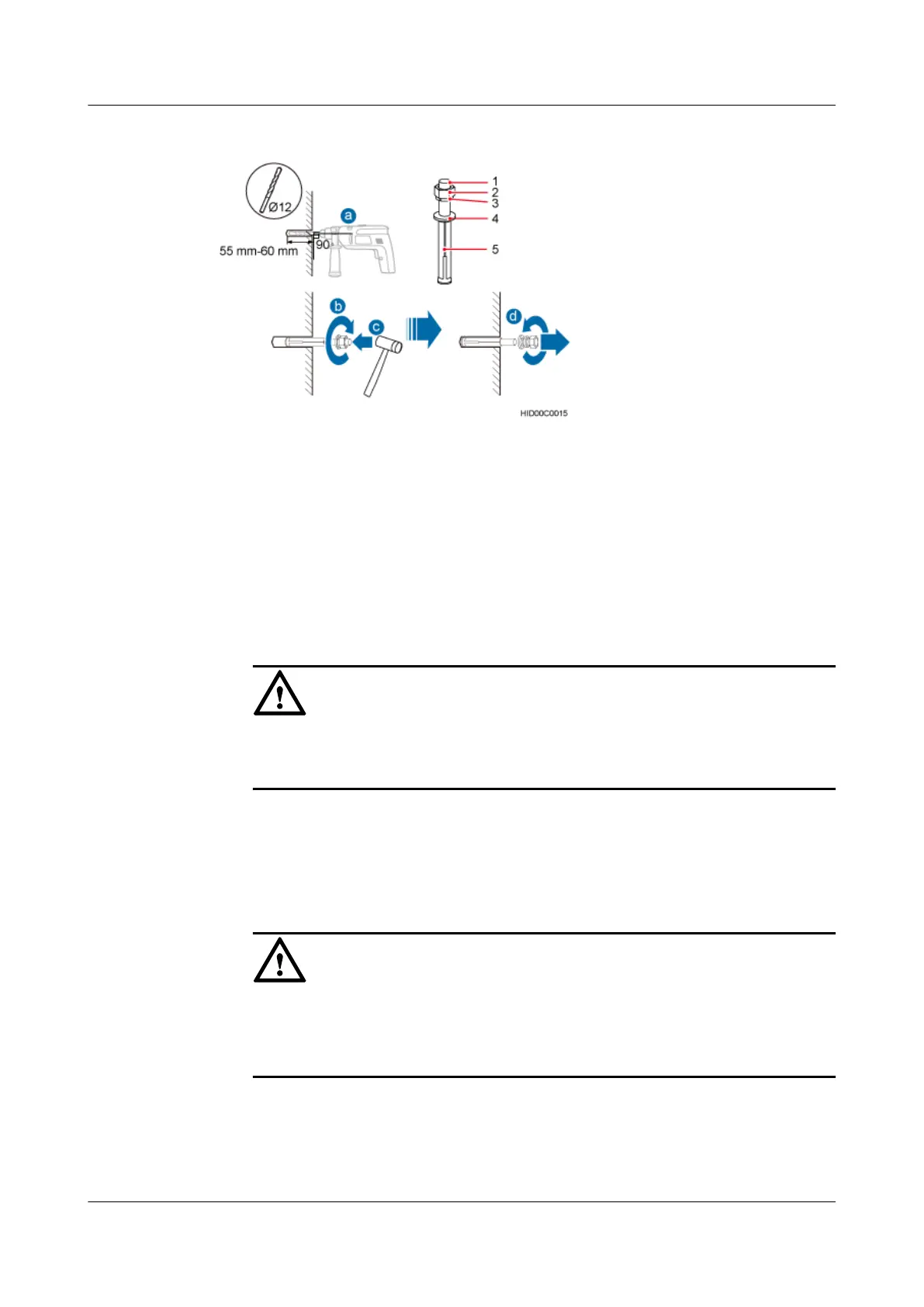 Figure 8-38 Drilling holes and inserting expansion anchor bolts