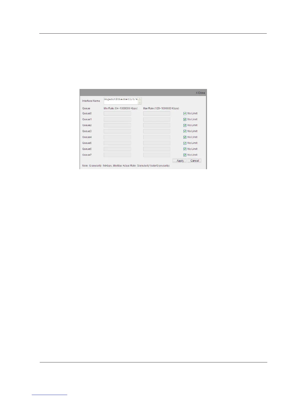 Step 3 Cancel checkbox of Unlimited on the right of queue, and enter the speed rate range of queue