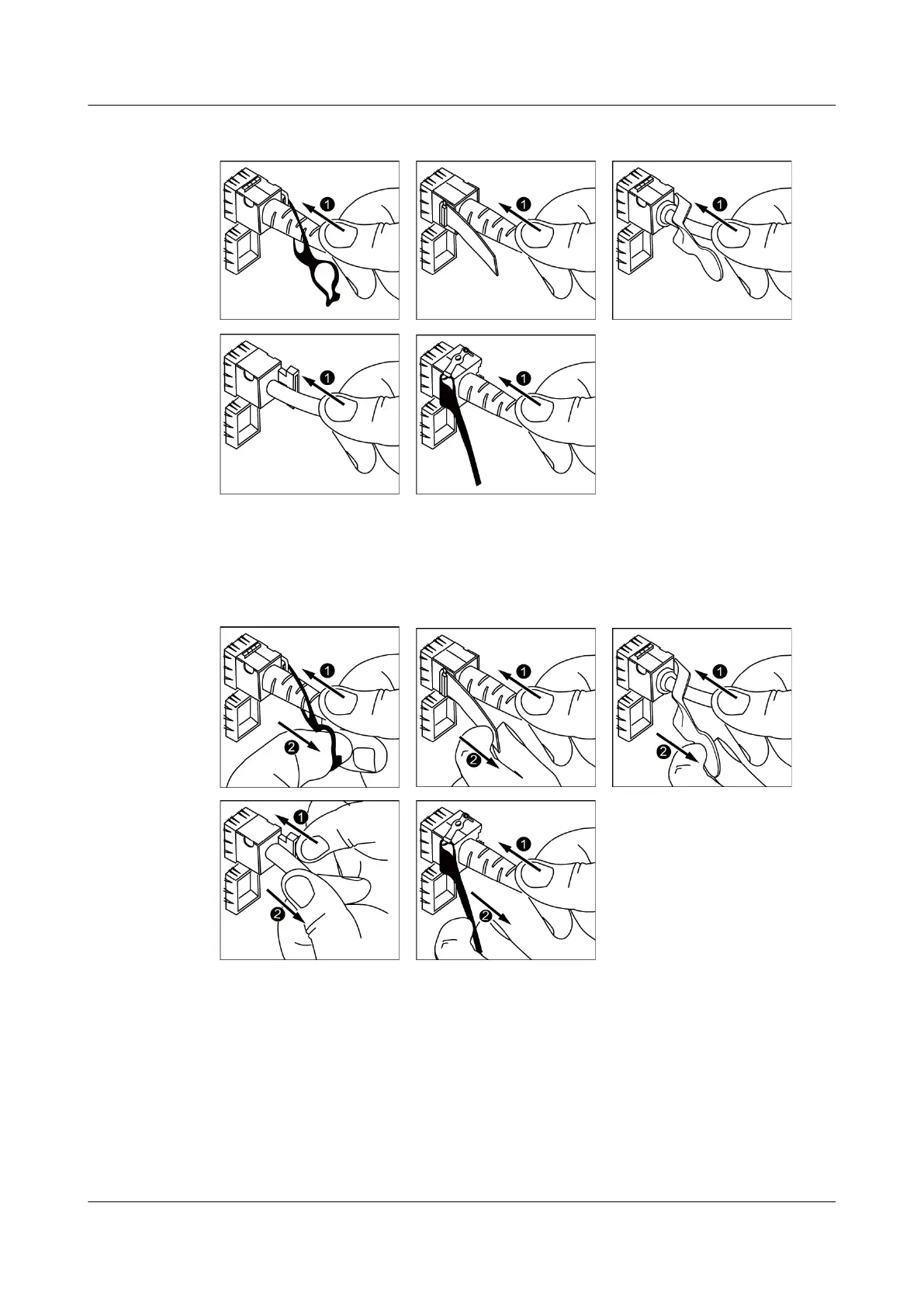 To remove a copper cable, gently push the cable connector inward and then pull the handle of