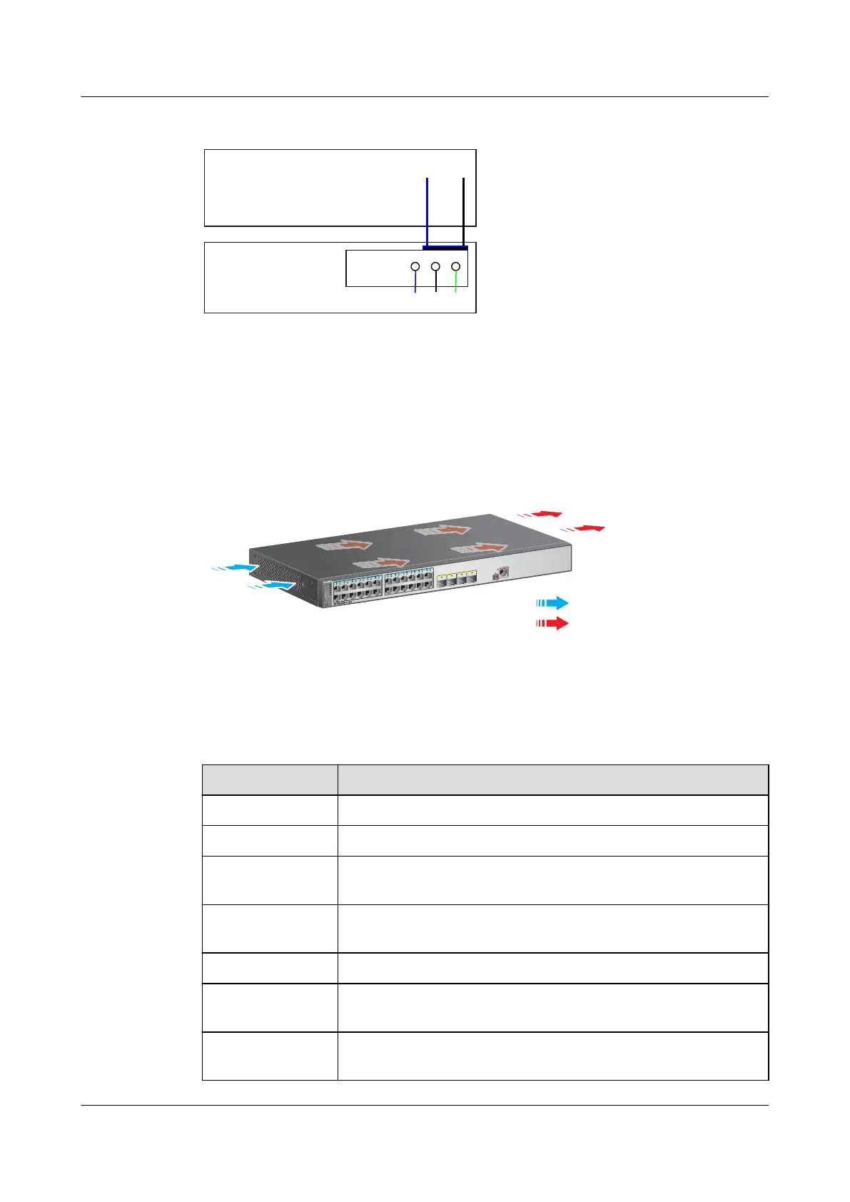 The S5700-28X-LI-AC has built-in fans for forced air cooling. The airflow direction is left-
