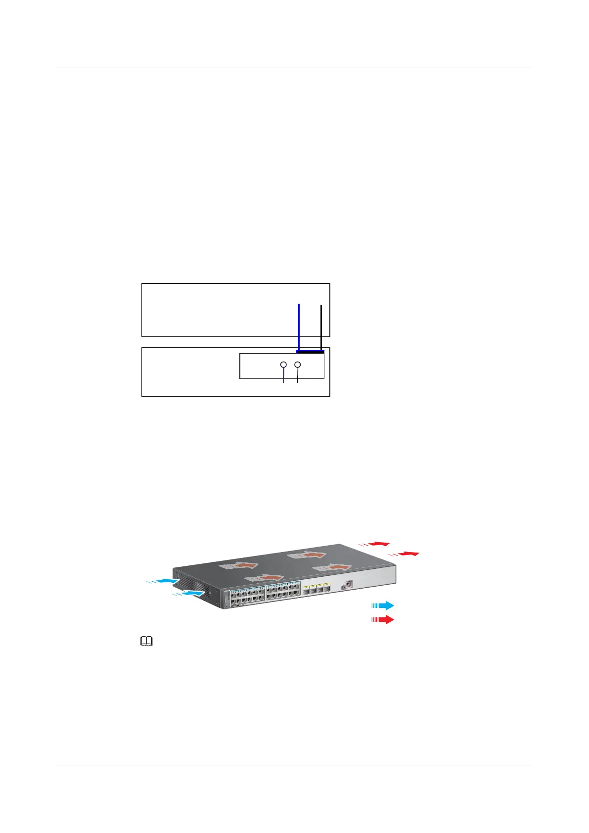 The S5700-28X-LI-24S-DC has built-in fans for forced air cooling. The airflow direction is