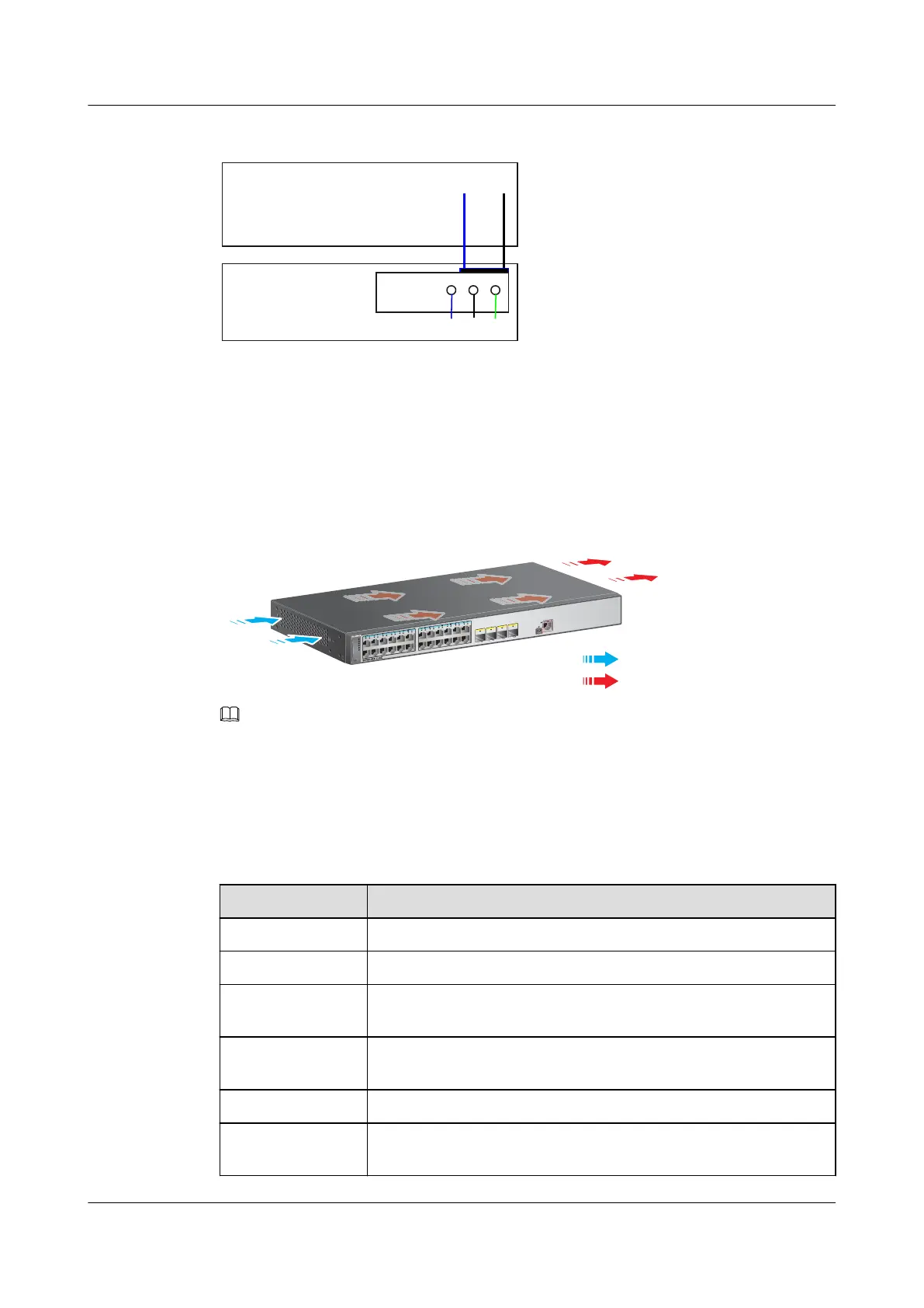 The S5700S-28P-PWR-LI-AC has built-in fans for forced air cooling. The airflow direction is