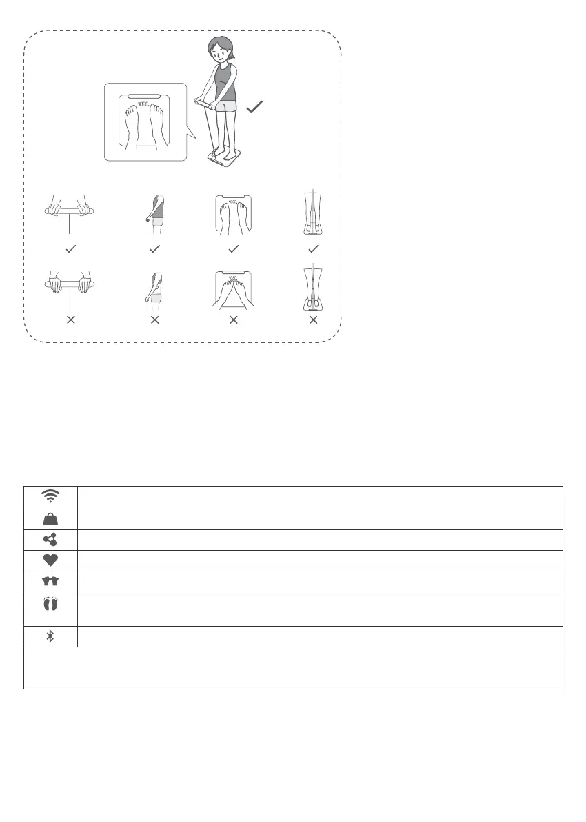 • Al realizar la medición, use ropa liviana y párese descalzo en la báscula.
