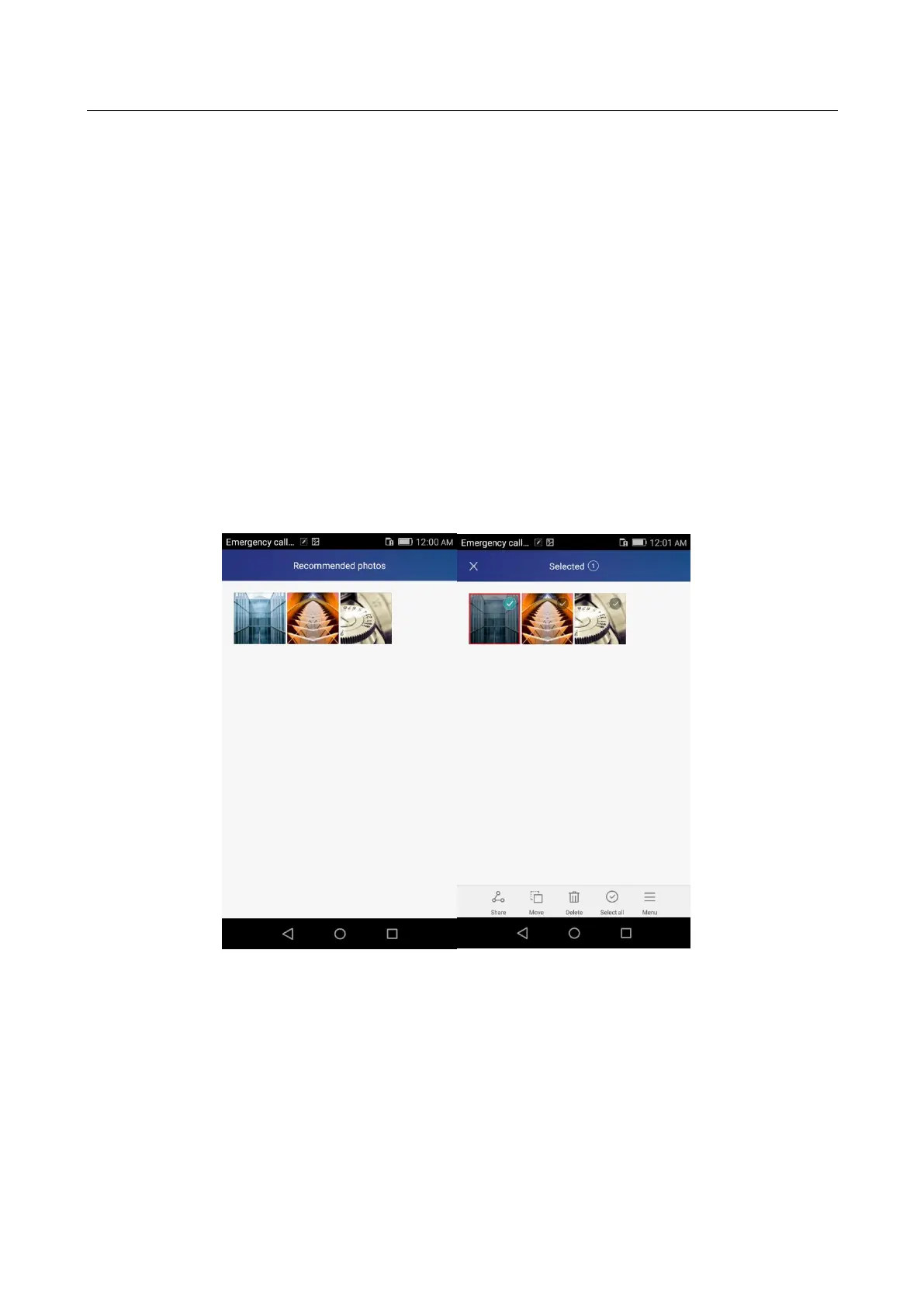 To share a file, go to Gallery, touch and hold the file. On the displayed option menu, touch