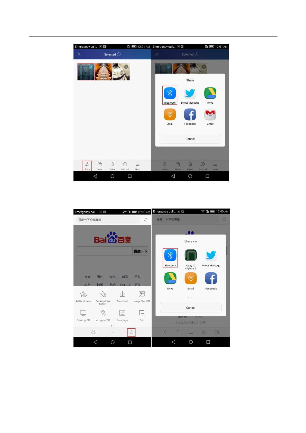 To share a web page, open it, and touch Menu > Share page > Bluetooth.