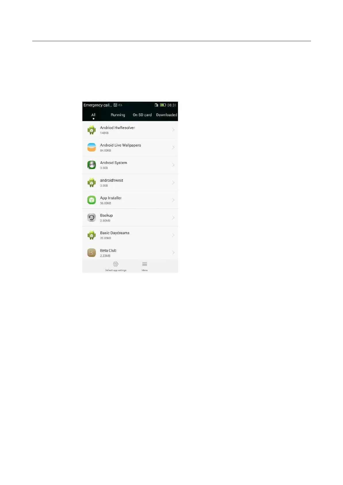 In the upper part, you can switch between the following four tabs: All, Running, On SD