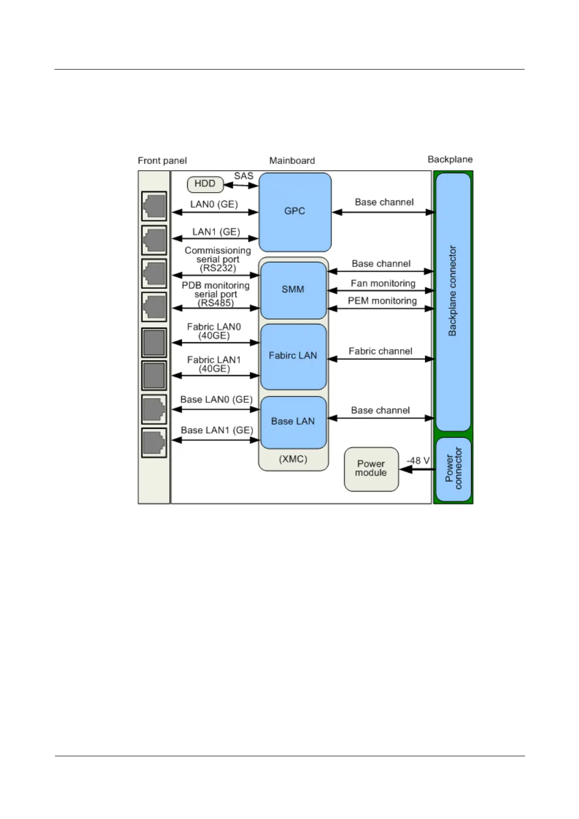 The SMM monitors the MXUA0 and the BMCs on service boards, and performs subrack