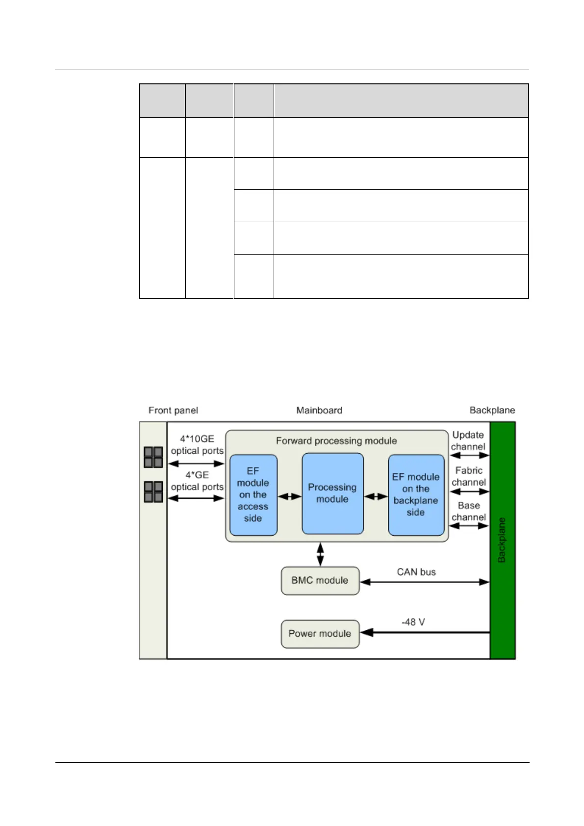 The expedited forwarding (EF) module on the access side provides four SFP+ and four