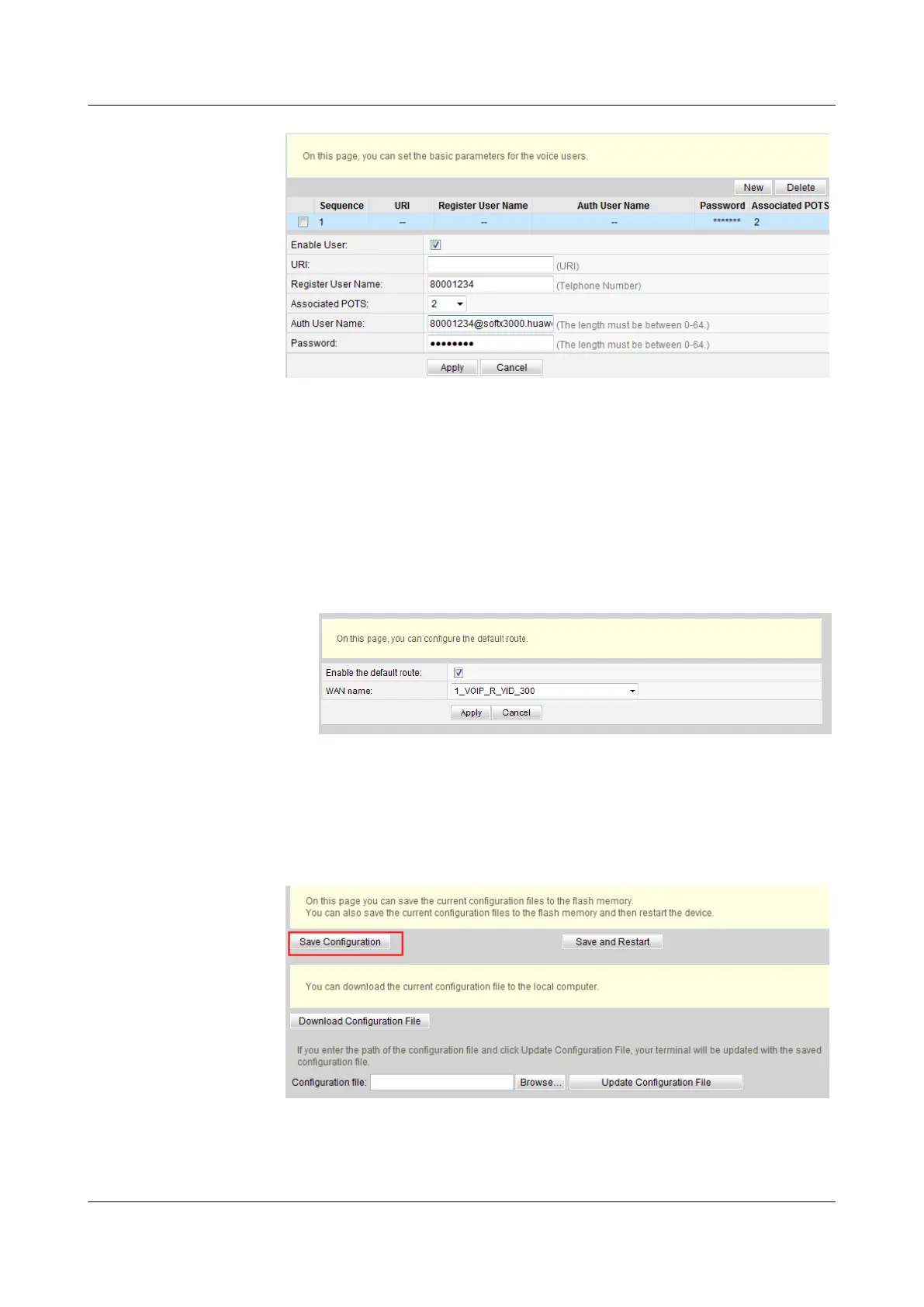 Perform this operation if the IP address of the ONU and the IP address of the voice
