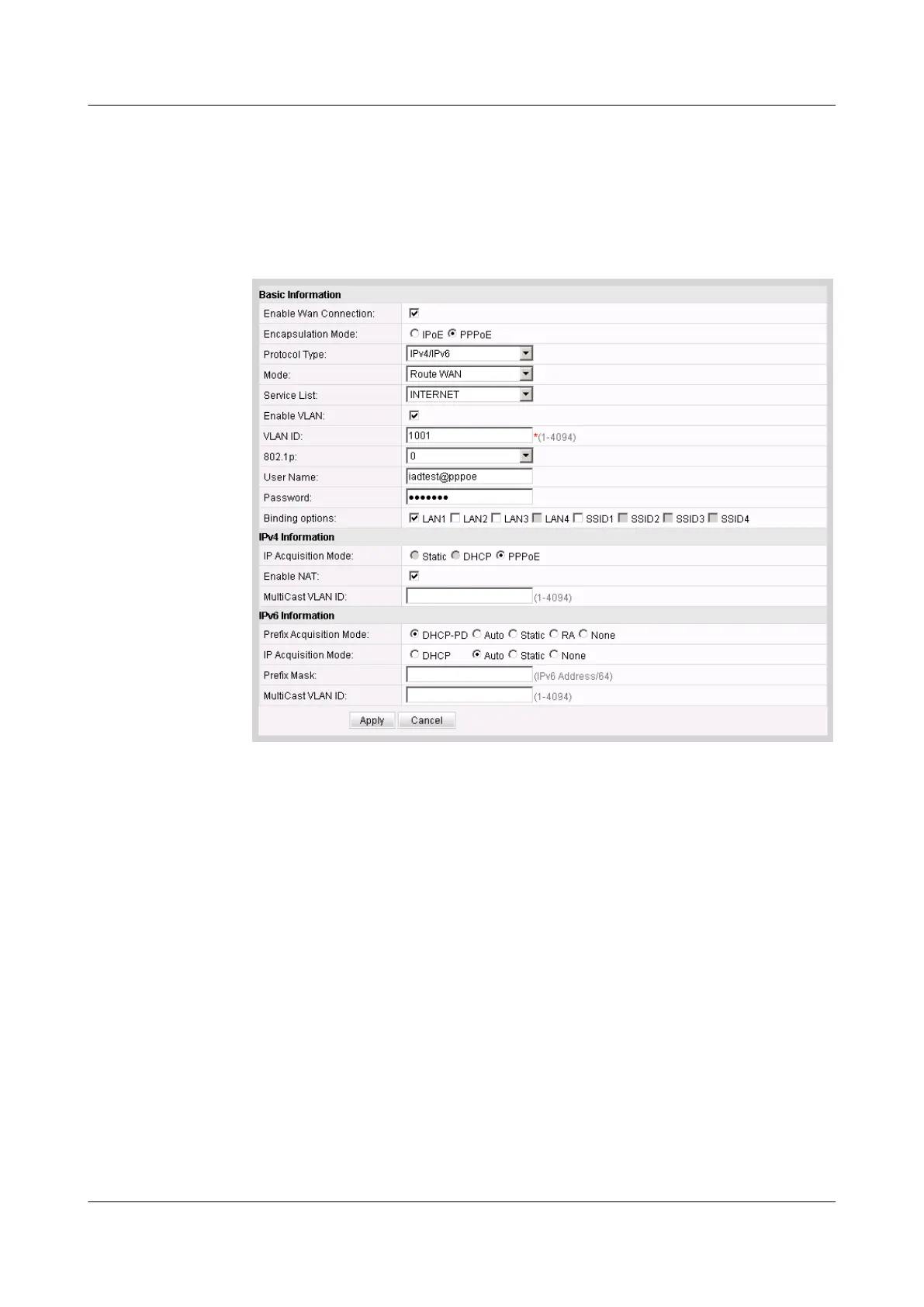 Figure 19-9 Parameter settings on the Web page for the WAN port