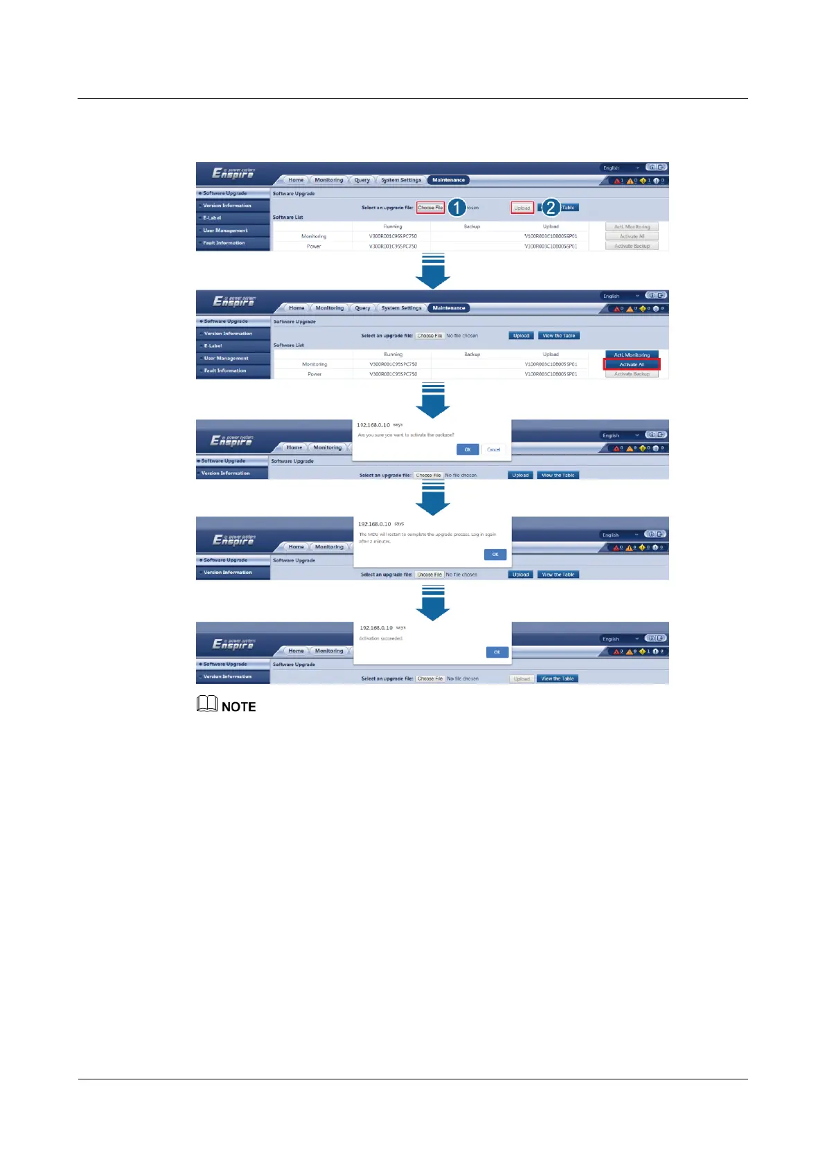 Figure 8-2 Uploading and activating the software (the BCB switches of all battery cabinets are