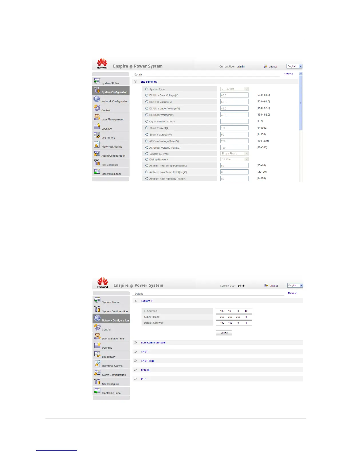 Figure 4-7 shows the Network Configuration tab page. Figure 4-8 shows the expanded
