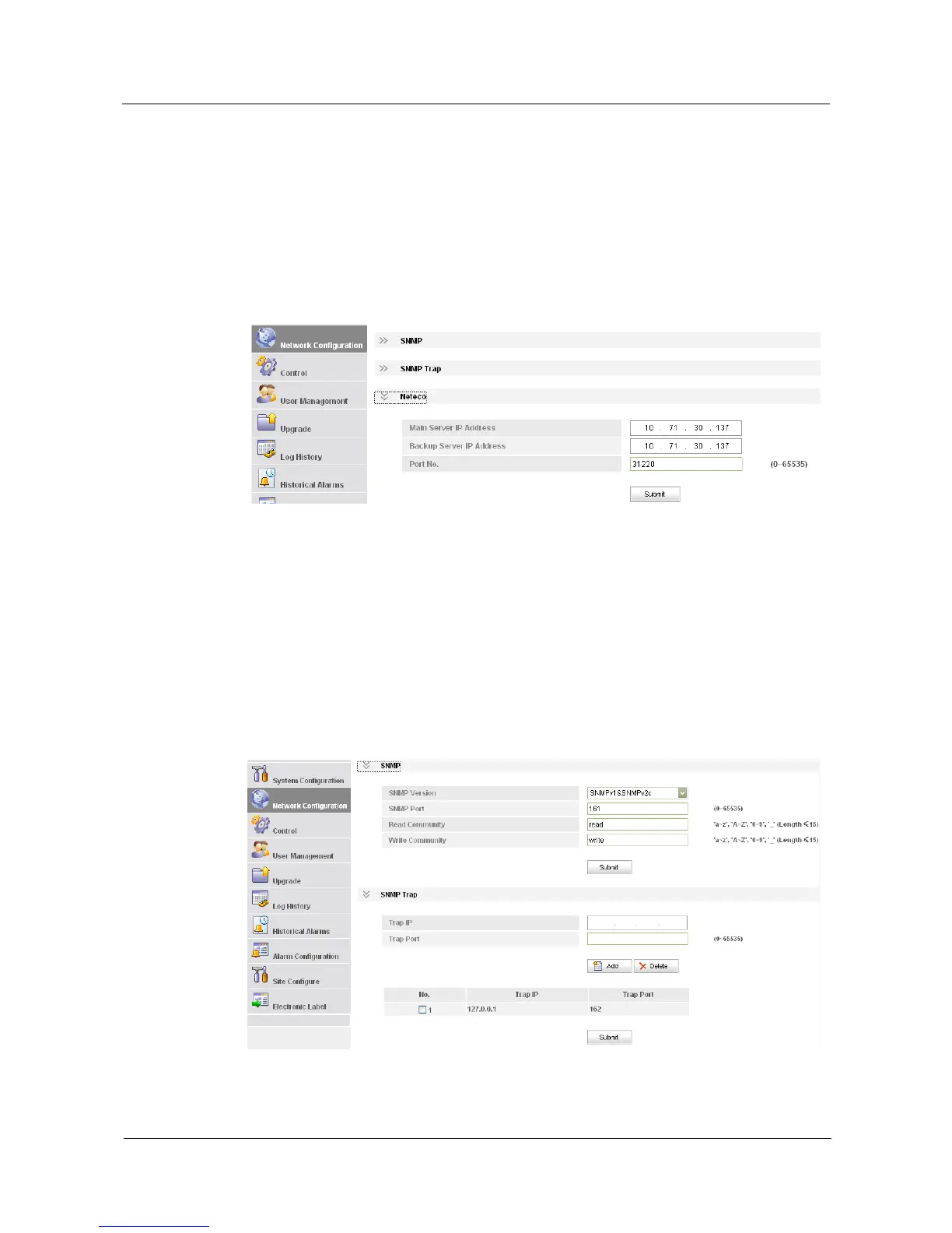 server IP address. The IP port is the alarm interception port and its default value is 162. For