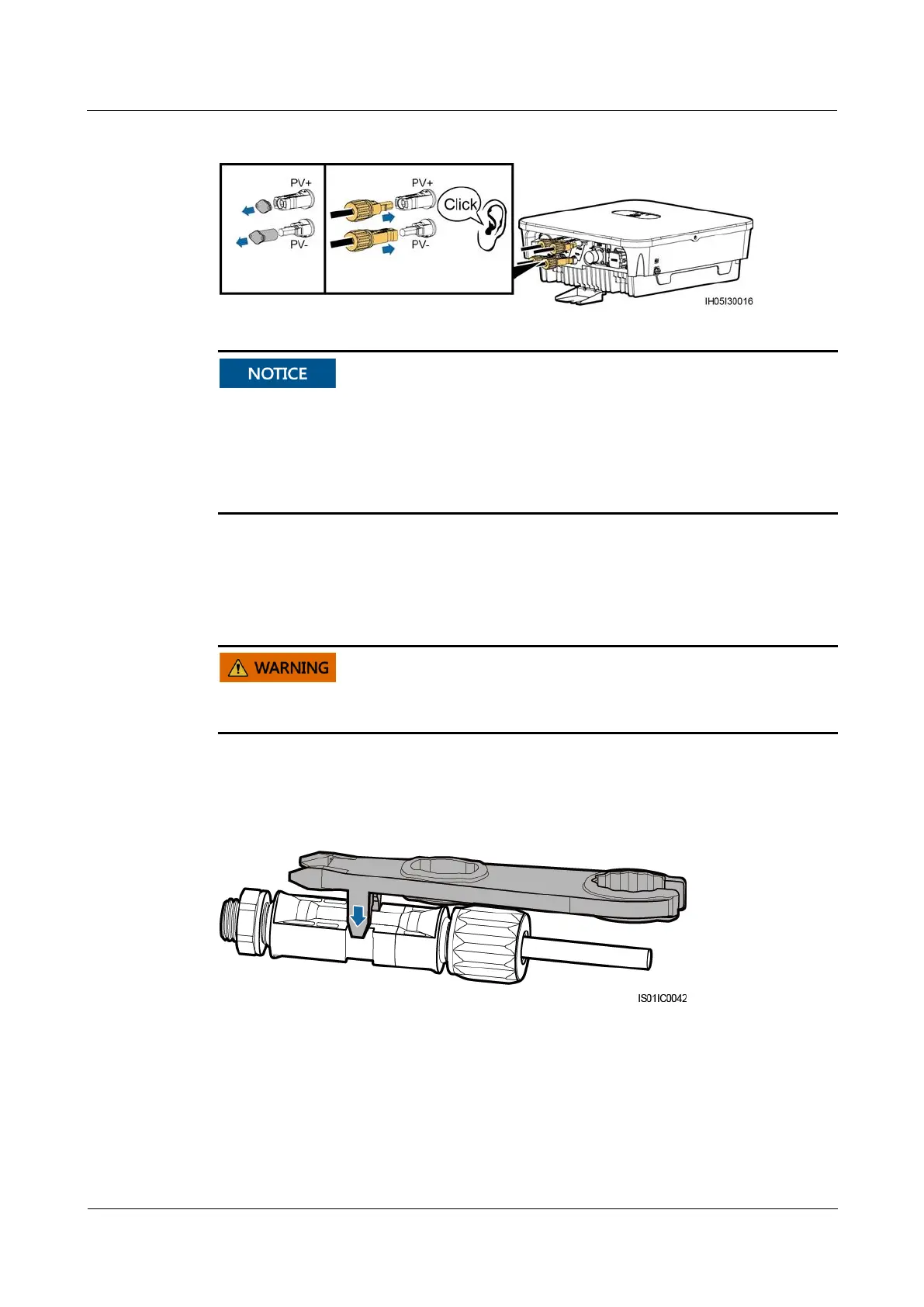 Before removing the positive and negative connectors, ensure that the DC SWITCH is set to