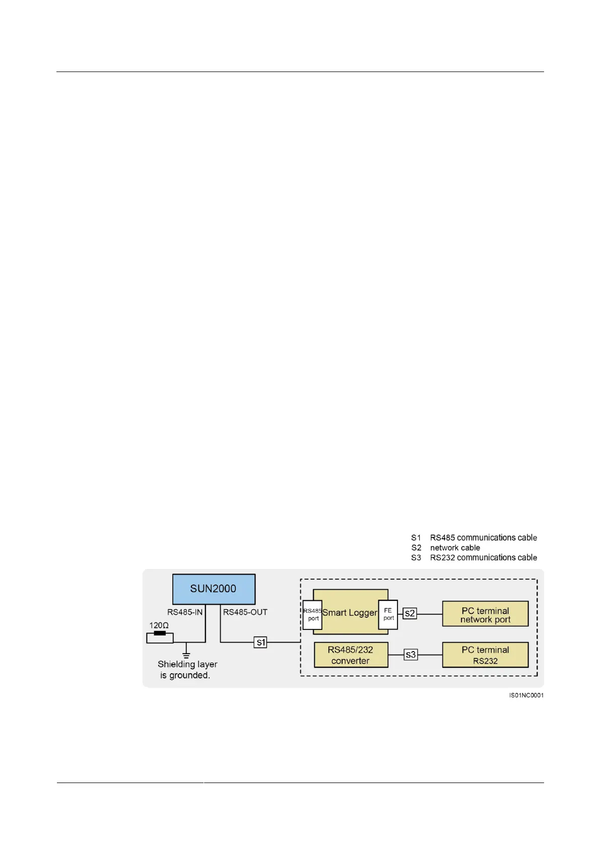 Figure 5-25 shows how one SUN2000 connects to the Smart Logger and the PC terminal.