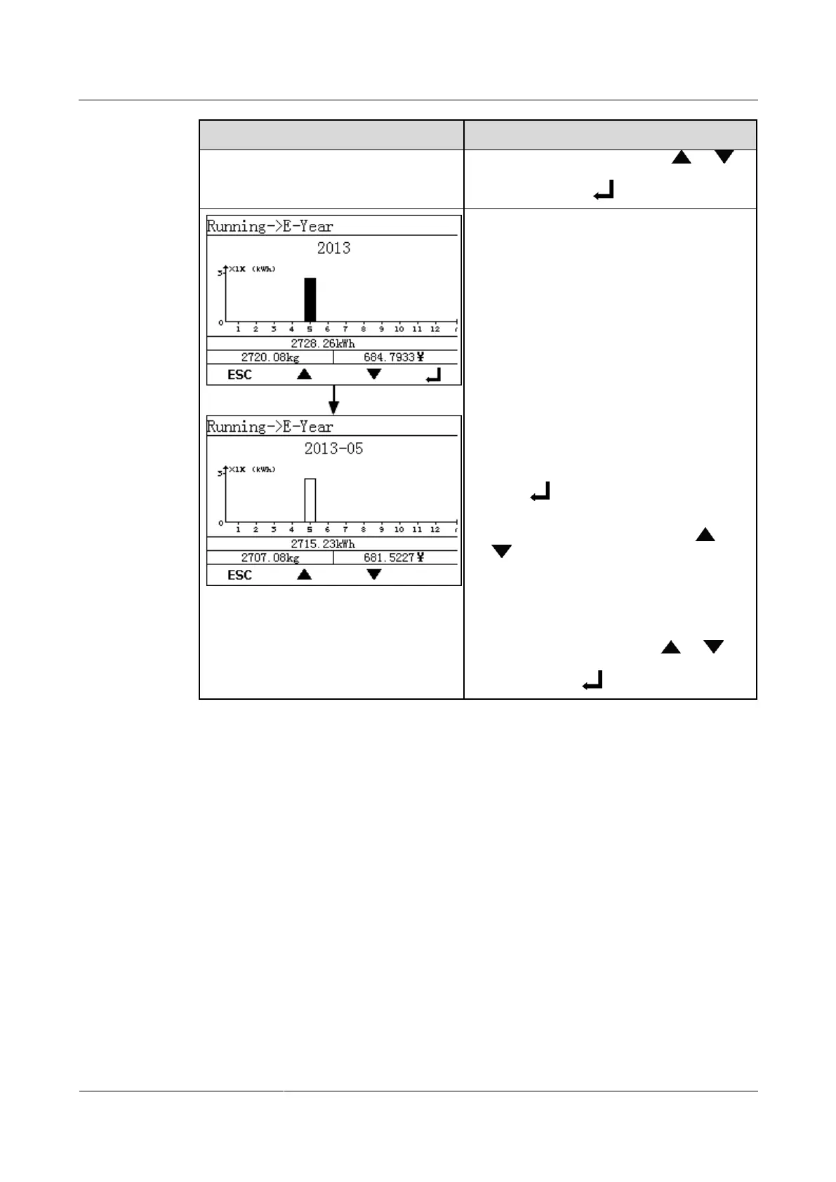 2. Press to view the energy yield on a