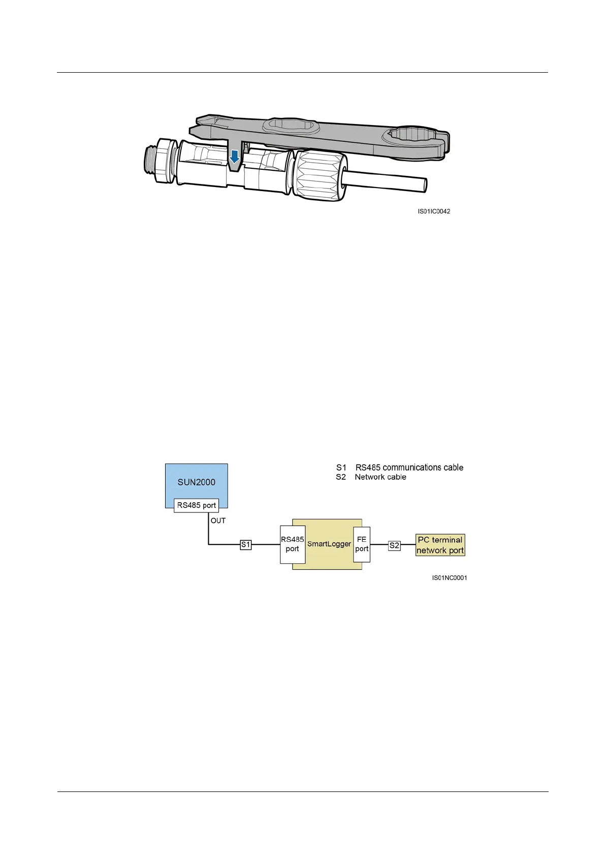 The SUN2000 can connect to the SmartLogger or to a PC through the SmartLogger to