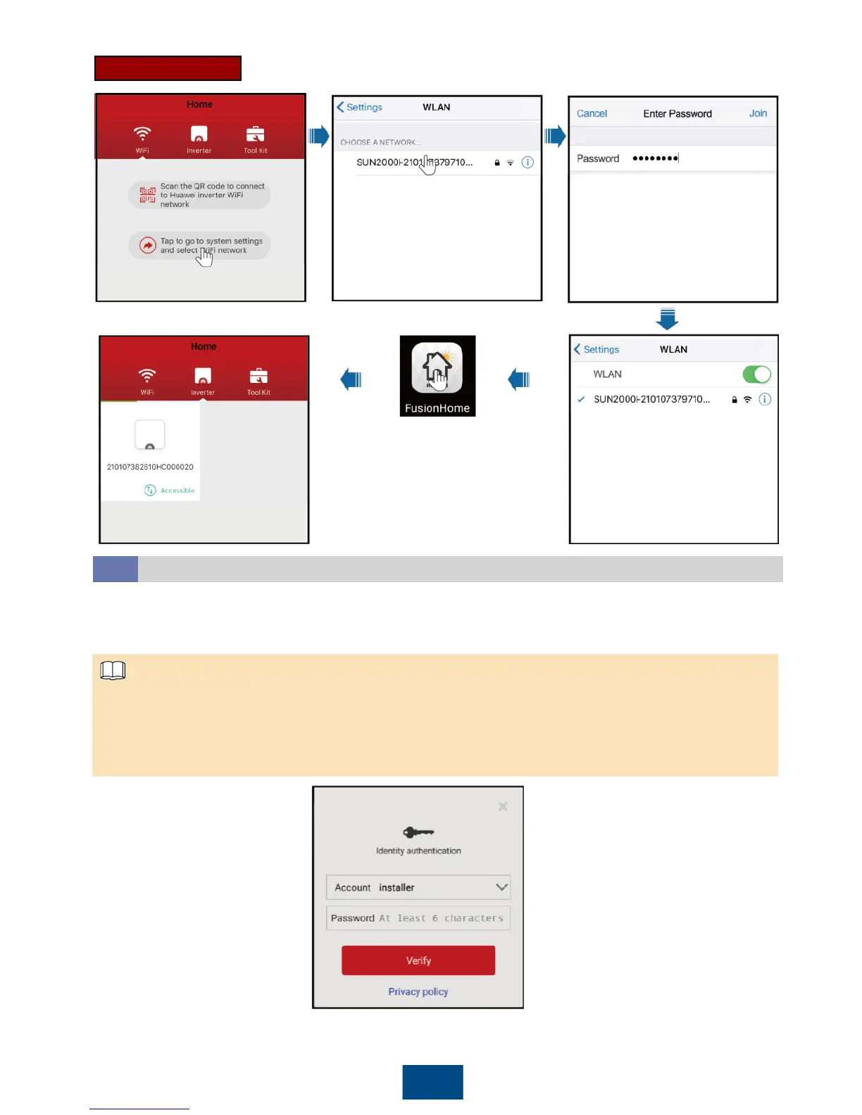 1. On the Inverter screen, tap the corresponding SUN2000, select installer, enter the password,