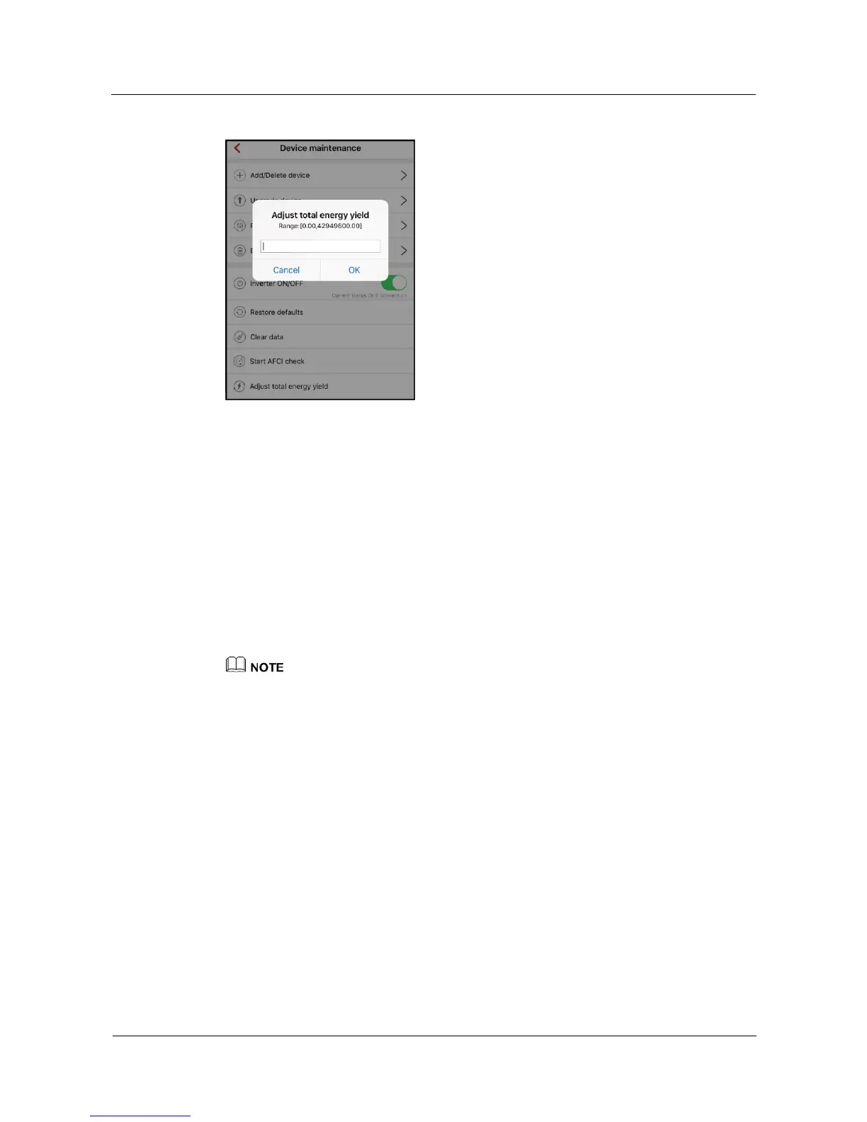 Adjusting total energy yield: Specifies the initial value of inverter energy yield. This