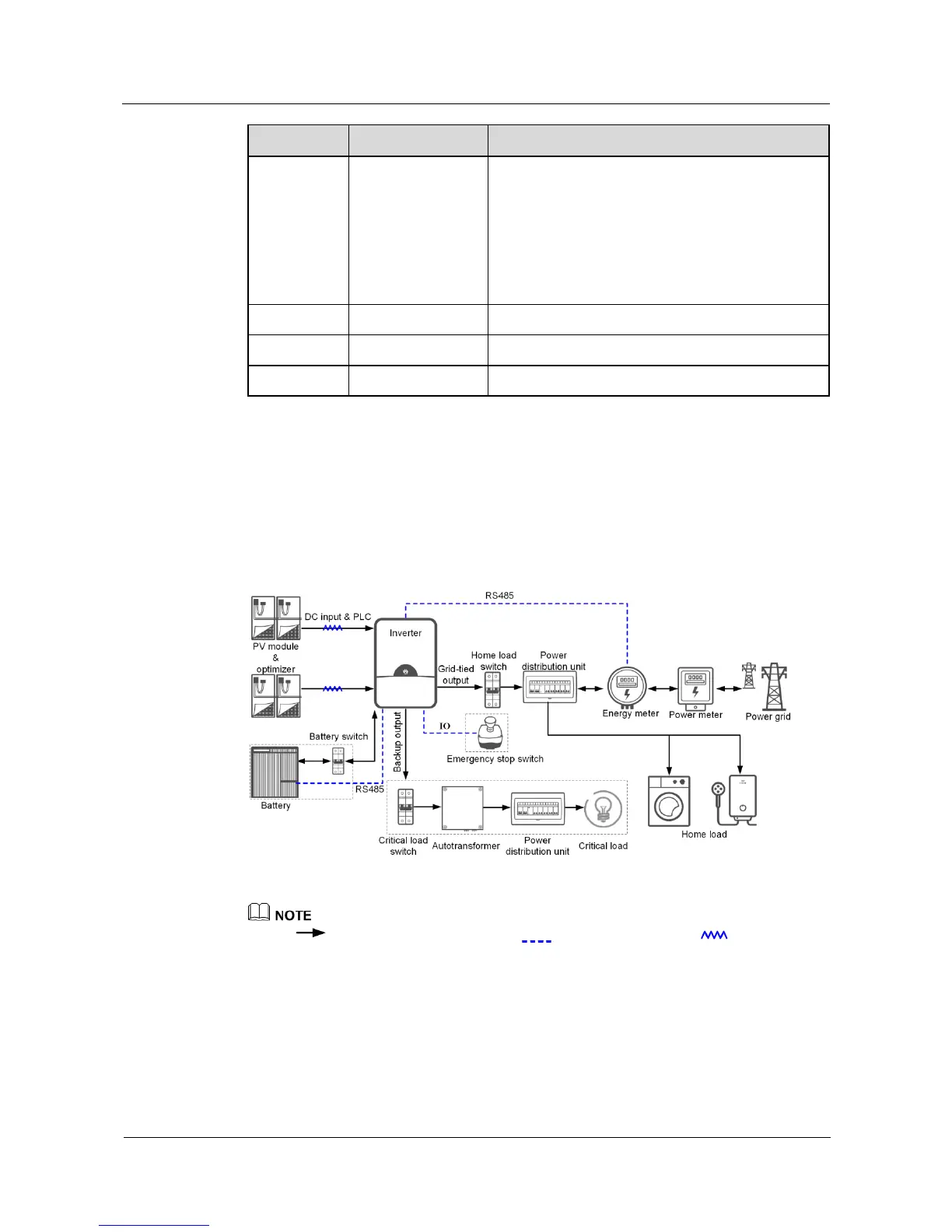 indicates the power flow direction. indicates the signal cable. indicates the