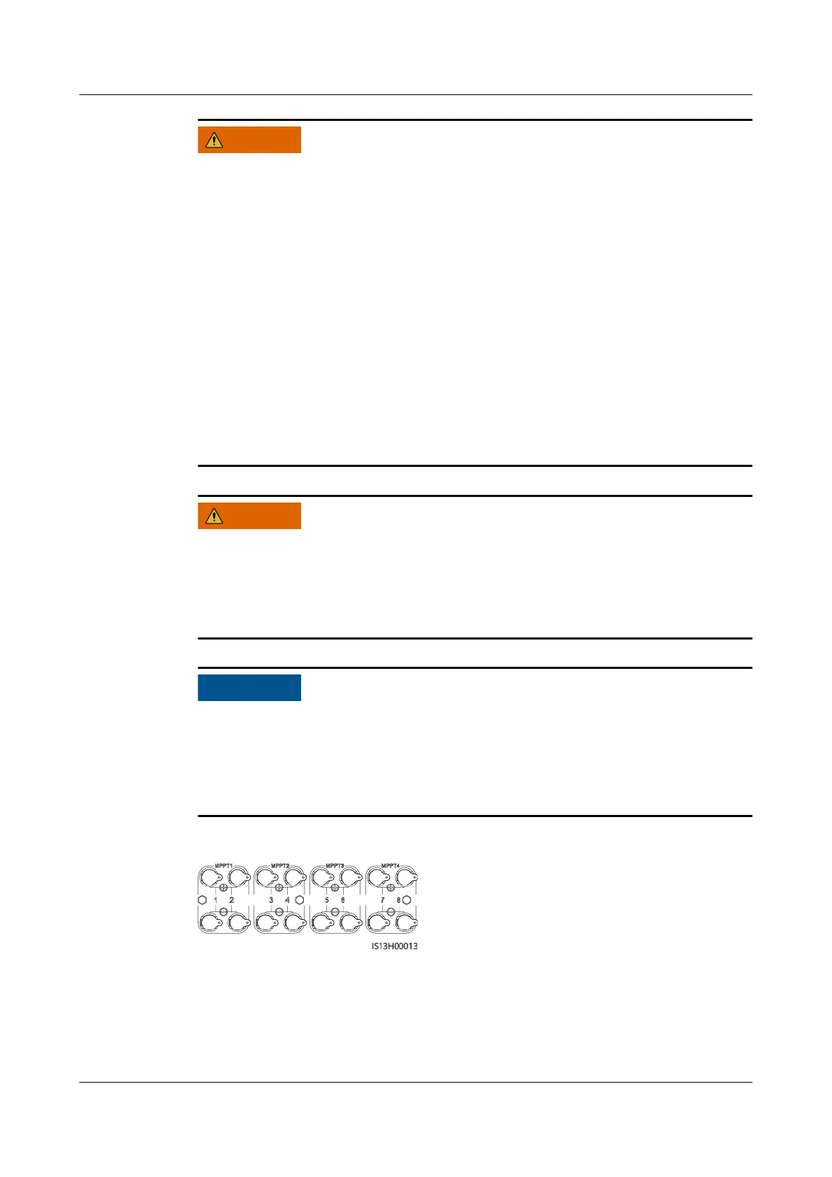 1. Evenly distribute the DC input power cables on the four MPPTs and
